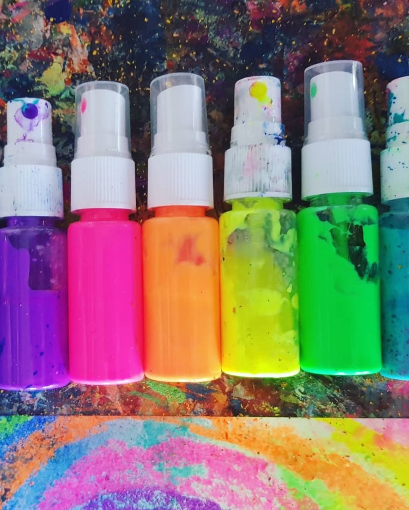 These are fantastic!!!!!! I found these sprays at kmart Australia. Im not sure if they have been discontinued but you get still get spray bottles & fluro acrylic paint and add about 50% water, 50% paint or experiment to suit what works best for you! We found the Ikea spray bottle to be a great price and a winner with making your own spray paints too! More information and inspiration on my Instagram page. http://www.instagram.com/scarletterosefairyartcraft ๐๐๐๐๐๐งกโค๐