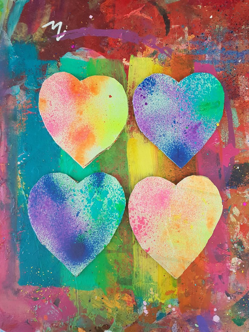 Our gorgeous fluro hearts, we used cardboard from some deliveries, cut them up into hearts!…. These spray paints are awesomeeeeeee!!! We have been using them so much in our crafty creations, they are $5 from @kmartaus with all the stationary goodies, highly recommend these, they have given us such stunning effects, it works better if you can let each layer dry to avoid muddy murky colours or use similar colours together, like pink/orange. Or purple/blue etc… hope that helps a little bit?! Ohhh and painting tbe surface white to get brighter results ๐๐๐๐๐๐๐งกโค๐ #rainbow #rainbowcraft #colour #color #paperart #papercraft #mindfulness #finemotorskills #learning #kidslearning #creative #creativekids #craftykids #learningthroughplay #handmade #kidscraft #craftykids #craftclass #artclass #teachart #kidsart #teachcraft #diy #diycrafts #rainbowwatercolour #watercolour #watercolor #watercolourpainting #artsupplies #arttherapy