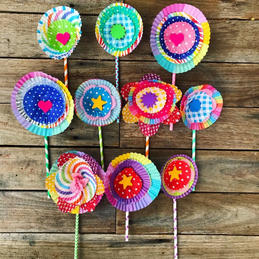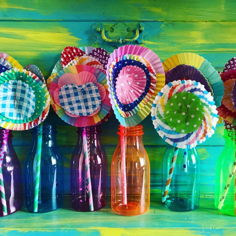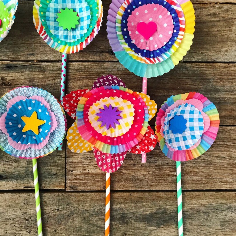 These were an absolute delight to make, they are so sweet and look even better where there is a bunch of these flowers. We used paper straws as the stem, the sweet cupcake patties have been collected over the year as I see them at the supermarket, dollar stores or party shops. It’s not hard to collect these if your a crafter and all the shapes & sizes go together perfectly. We used tiny pins in the middle to hold them securely to the paper straws, they are from Clever Patch in Australia. Hope you feel inspired to create these for a fun magical spring craft activity, or even a party in the sunshine!!!