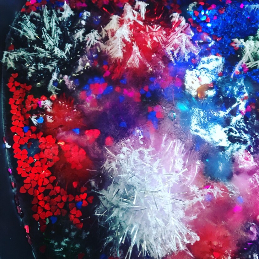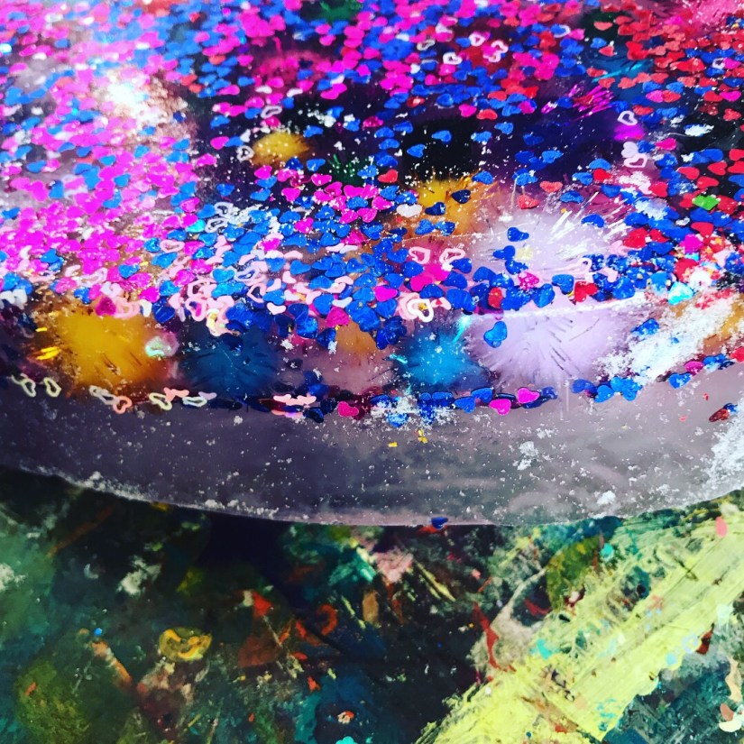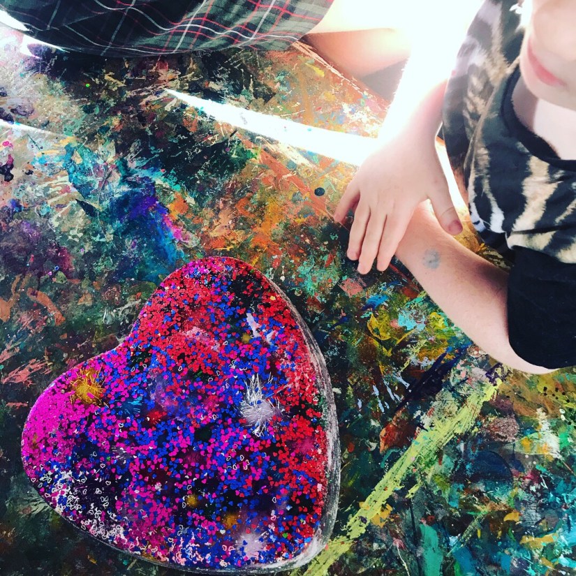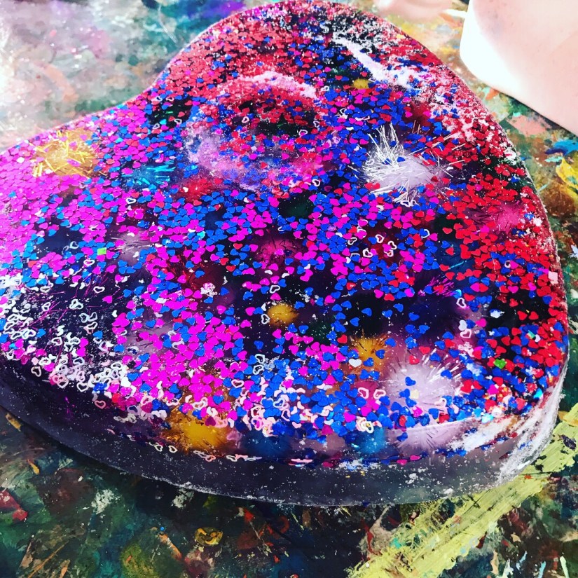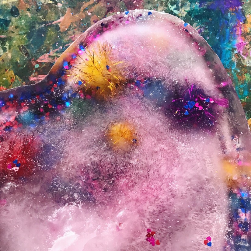 Summer time frozen hearts, these are filled with sensory treasures, I had this sweet heart baking tin and I’m not a big cook…. haha, always finding a different use for things, so we filled it with objects I had in my craft stash, filled it up with water and popped it in the freeze overnight, the next day it was used on a hot summers day to cool everyone down, by touching the ice, you automatically cool down, so with a pipet sucking up water and sprinkles of salt, watching this melt and discover treasures is a great way to engage little ones, kid friendly ways of learning basic science, and STEM activities. The excitement of little faces getting the sparkly Pom poms is so cute!!! This will work with with any baking tin. Hope you feel inspired to create!!!!