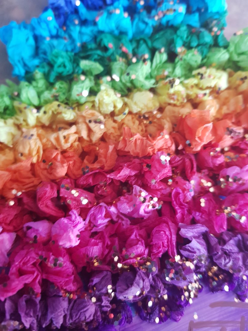 This was bringing back memories as a kid, do you remember doing these or scrunching up bit of tissue paper or crepe paper into tiny balls, pouring the glue, We also added a little bit of glitter βΊππππππ§‘β€π