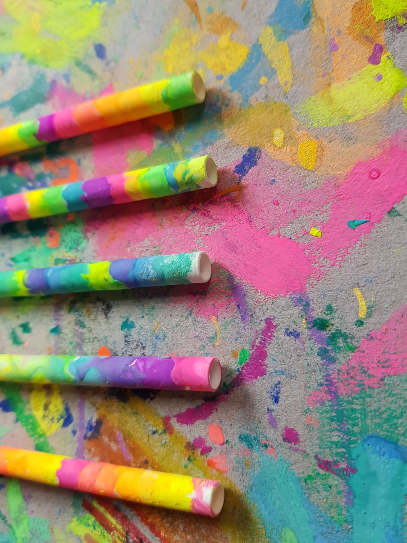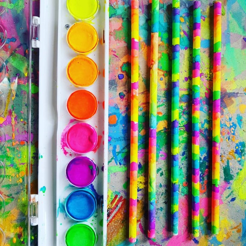 Hand painted white paper straws! The fluro colours are magic using our favorite from @micador and straws from @colessupermarkets Australia or dollar stores, even online like Ebay stores … we threaded the straws onto a skewer to get a nice even coat of colour, can’t wait for the kids to make beautiful colourful necklaces, we cut them up all different sizes and are really wonderful for kids to thread these!!! ๐๐๐๐๐๐งกโค๐