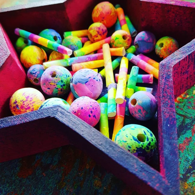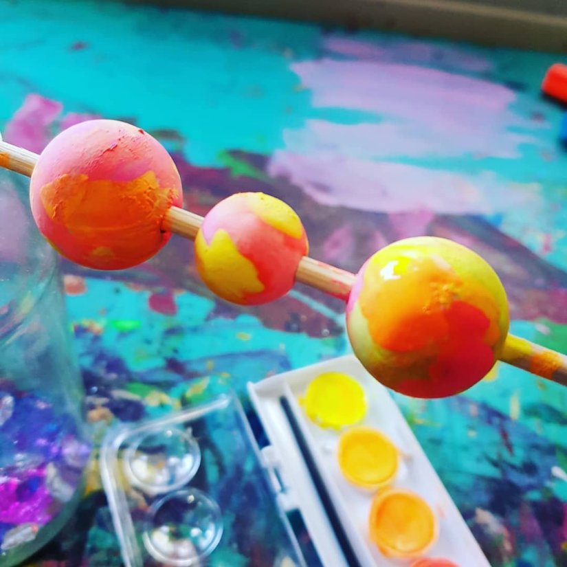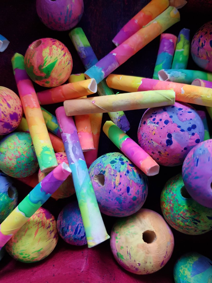 Hand painted wooden beads and white paper straws! The fluro colours are magic using our favorite from @micador and wooden beads from @spotlightstores ….. we threaded the beads onto a skewer to get a nice even coat of colour, can’t wait for the kids to make beautiful colourful necklaces!!! ๐๐๐๐๐๐งกโค๐