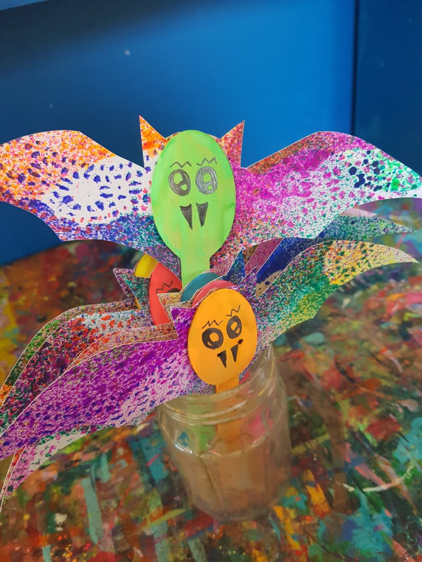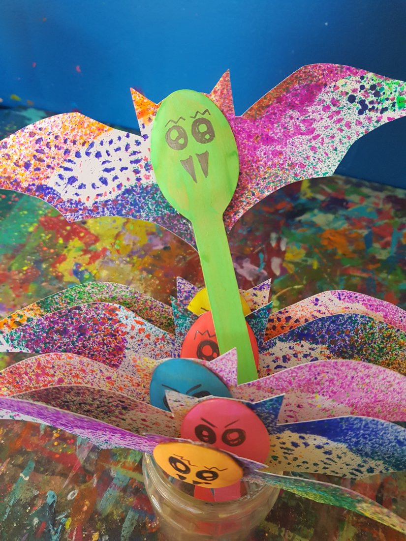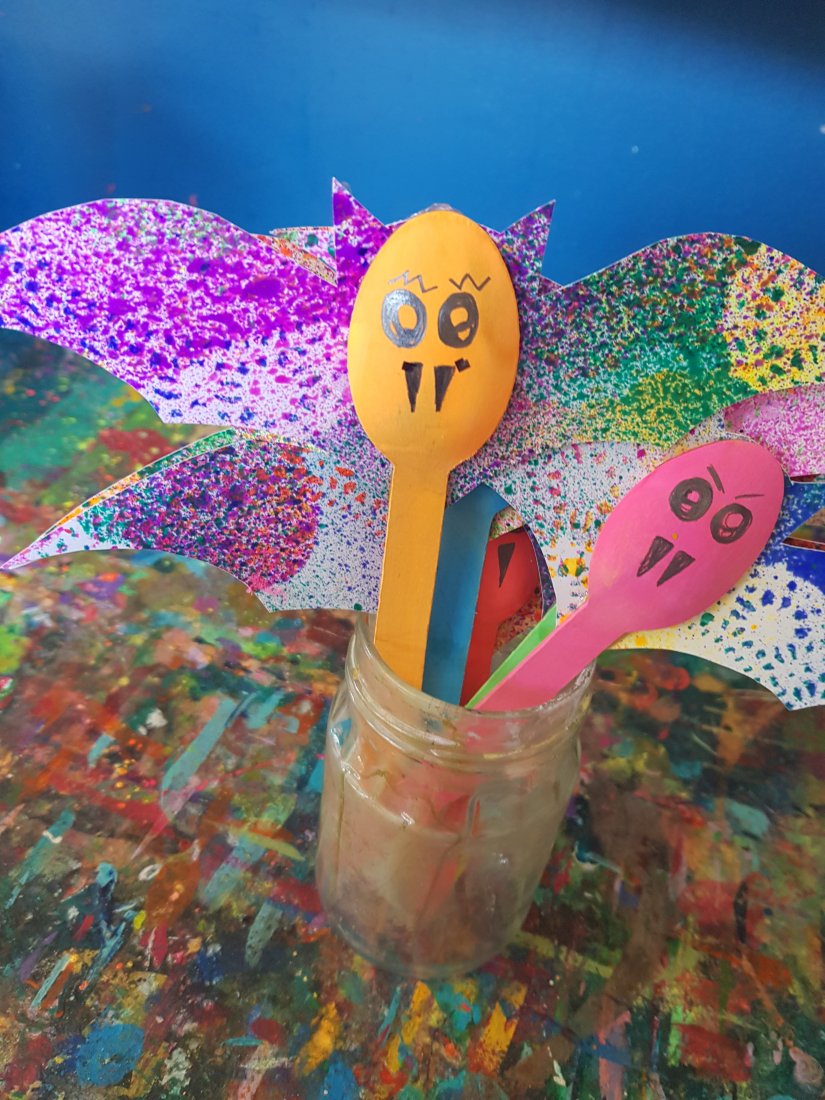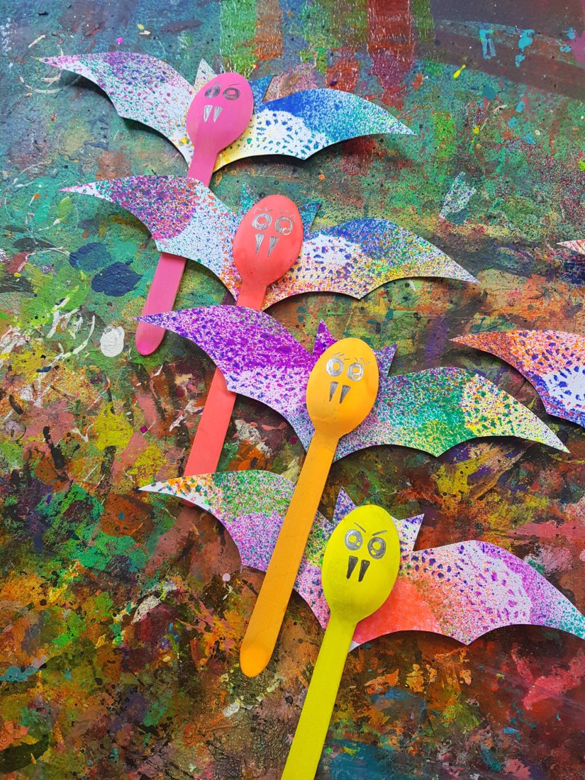 More cute bats, using some pretty paper that was used to paint doily’s on, we made bat wings and used wooden spoons from @kmartaus Australia, painted them with the dark arts, glow under blue light watercolour paint from @micador …… we had to make a bright rainbow family of bats! π¦π¦π¦πΈπΈπΈπ»π»π» #upcycling #imagination #crafty #craftykids #halloween #happyhalloween #sensory #woodenspoon #rainbow #childrencrafts #kidscraft