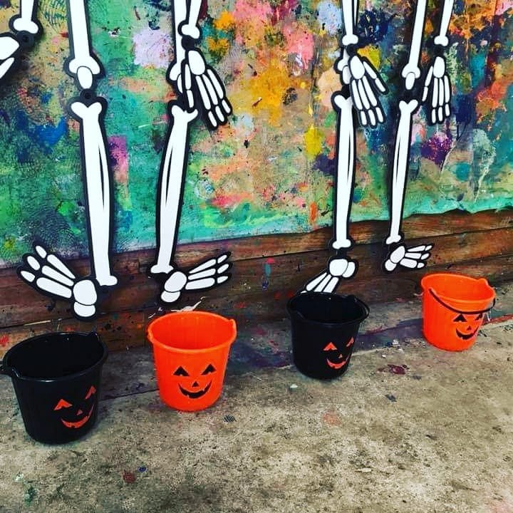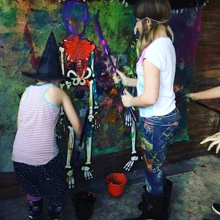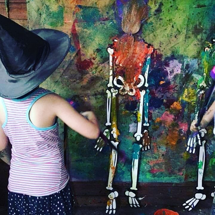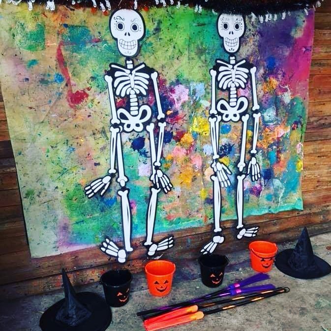 Skeleton painting with witches brooms, loads of fun and laughter!!! π»π»π»π±π±π±πΈπΈπΈπ¦π¦π¦π§‘π§‘π§‘ #sensoryplay #imagination #crafty #craftykids #sensoryfun #sugarskull #toddler #happyhalloween #sensory
