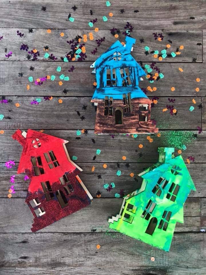 Spooky Halloween houses from this year & last year, these light up and the kids loved painting these!! Fun times!!! We have found great Halloween crafty goodness from Riot Art and craft stores Australia….. we use a mix of our favorite paints from Global who are based in Sydney and another wonderful art supplier called Micador, we are obsessed with their watercolours and they turn out so bright and bold, we love our rainbows!!!! π·π·πΈπΈπππ¦π¦π±π±π§‘π§‘ #watercolour #imagination #crafty #craftykids #sensoryfun #toddleractivity #toddler #toddlercraft #sensory #rainbow #childrencrafts #kidsart #kidscrafting