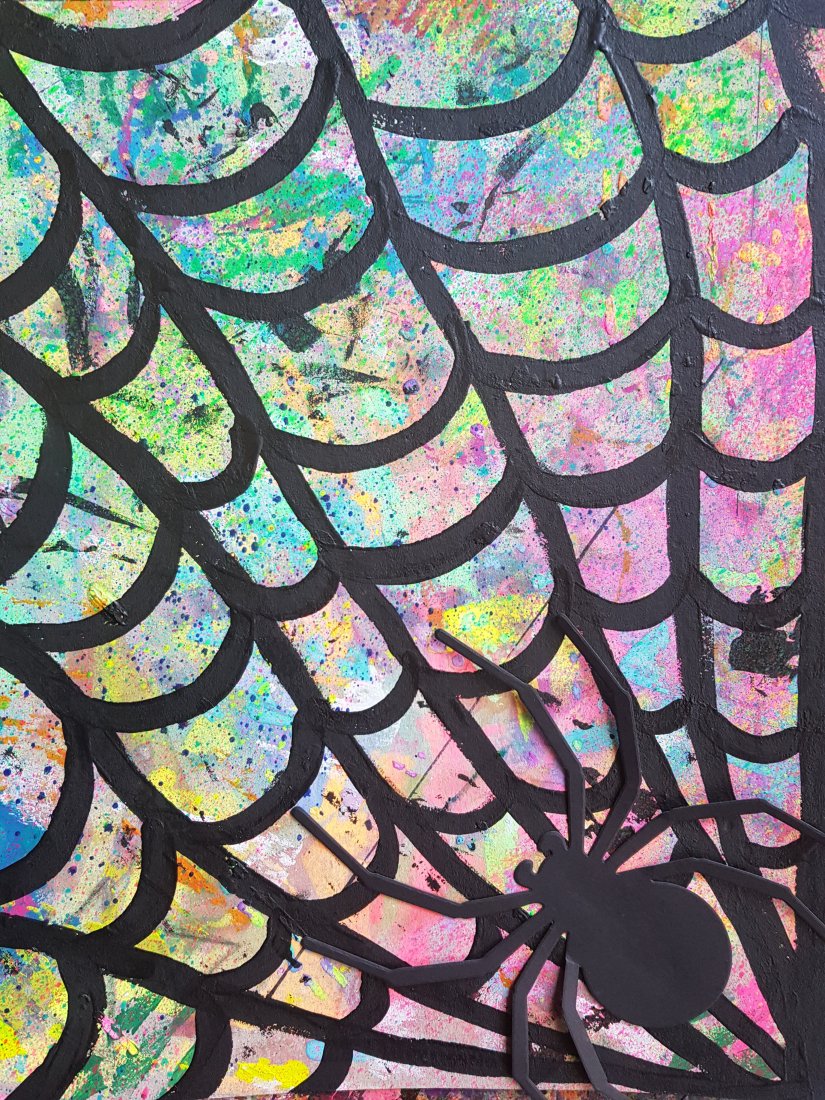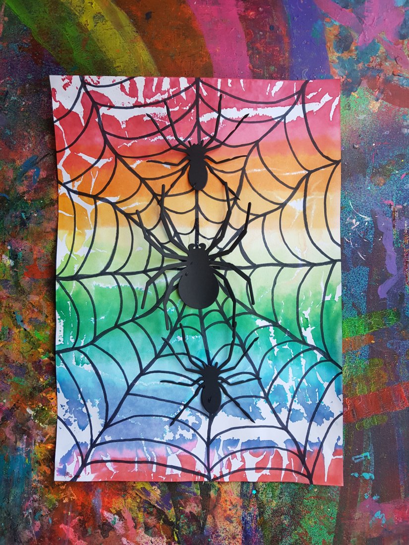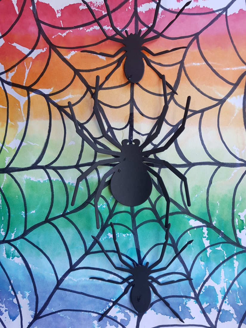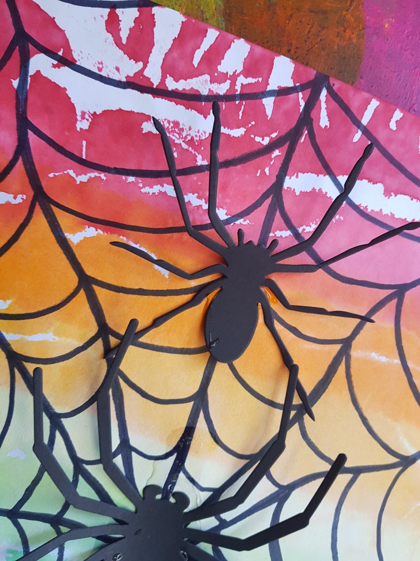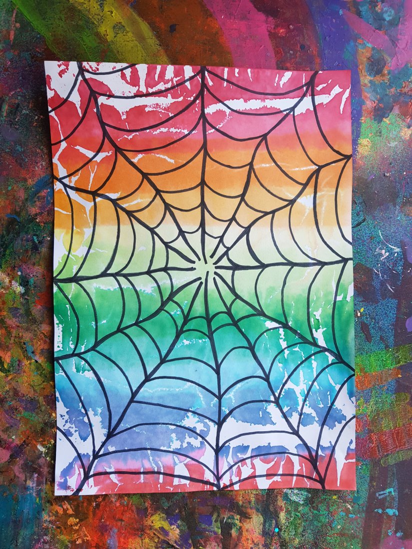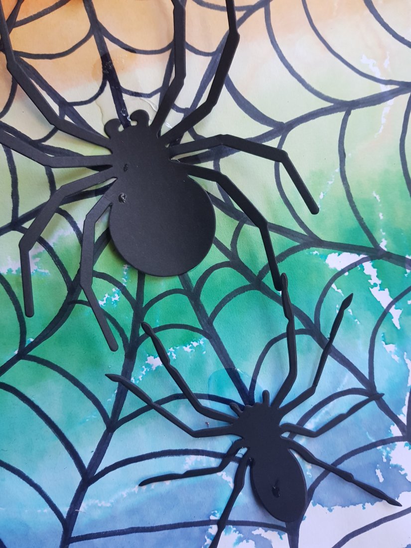 Bleeding tissue paper background! So much fun! I found the tissue paper on Amazon, make sure its the bleeding one, after trial and error and always learning that some dont bleed ππ…. so cut up, layed down on watercolour paper, spray with water, leave until dry, taddddaaaaaaa!!! Our cute spider cut outs from @riotartandcraft and web drawn with a sharpie marker!! Hope you feel inspired to create Halloween crafts!