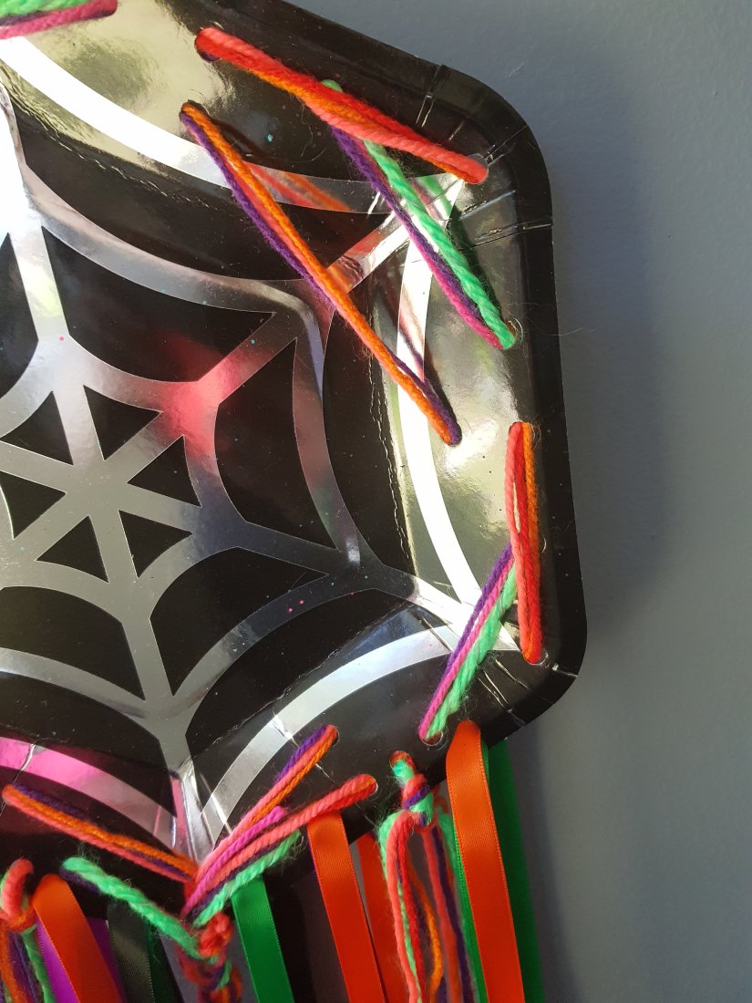 The cutest paper plates & ribbons from @spotlightstores Australia…. we thought a web weaving activity would be perfect!…..