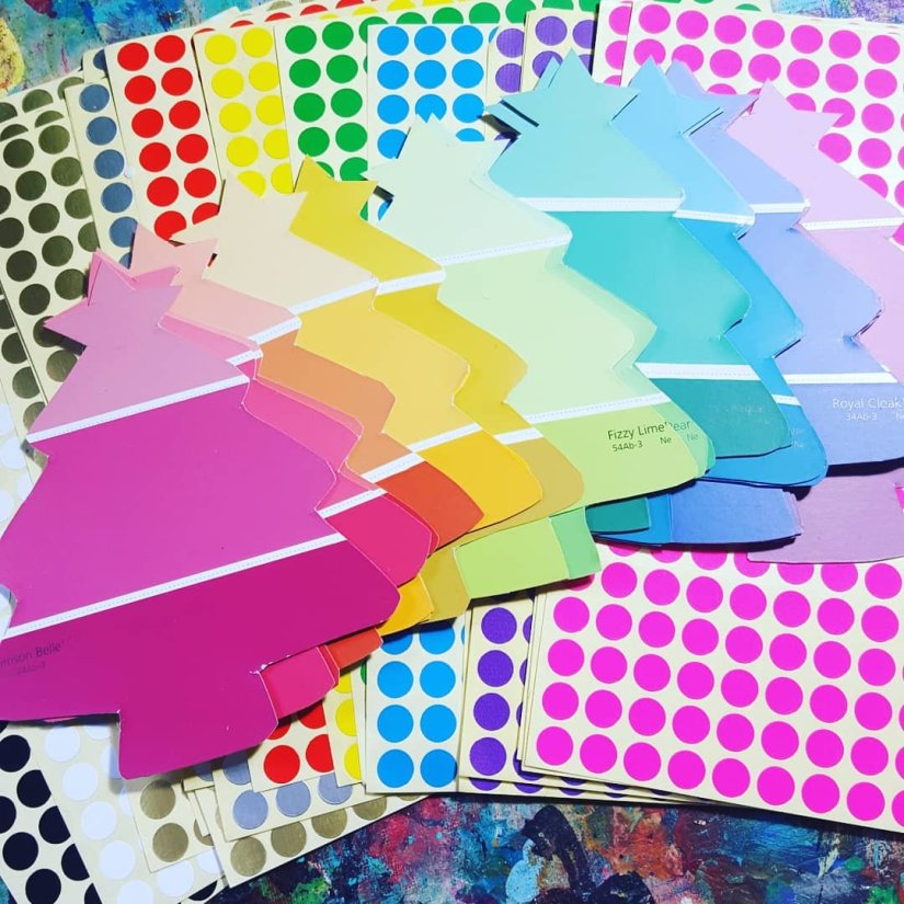 Paint chip card tree’s!! Simple fun crafts using polka dot stickers! ššššššā¤ā¤ā¤#paint #paintchips #paintchipcards #processart #colour #paperart #paper #papercraft #cardboard #cardboardcraft #christmassy #craftmas #christmas