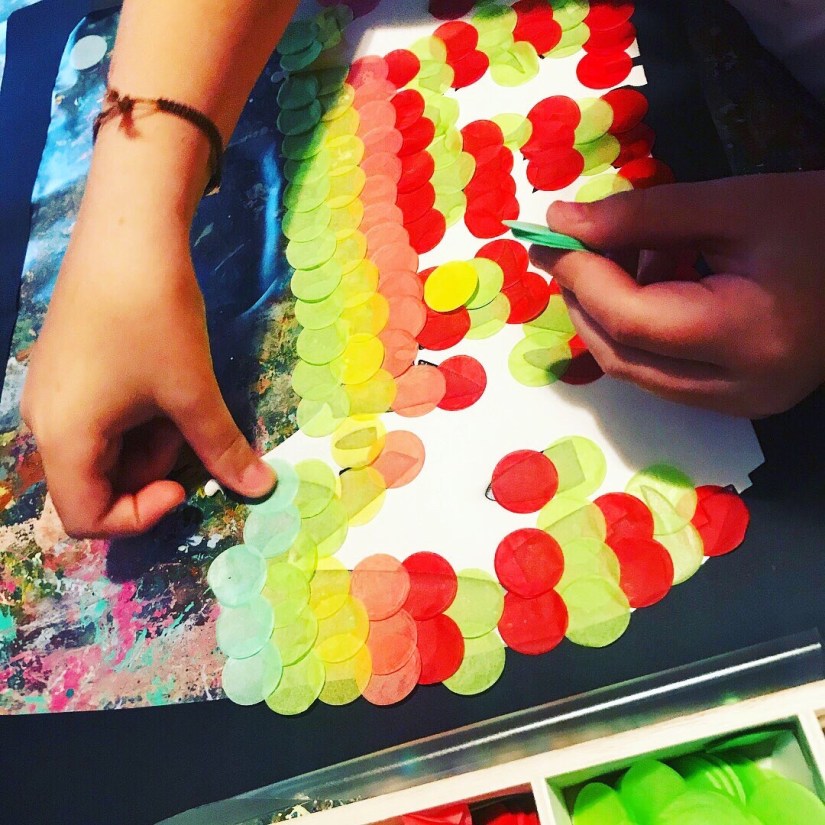 Gorgeous window art, our Christmas traditions of making our own version of stained glass, we used these cute little polka dot confetti dots from a party shop but have also seen them at hot dollar bargain stores too. We make a similar version each year when school finishes up, that in between time of going crazy waiting for that big bearded man to arrive!!! You can use ripped up or cut up tissue paper too……😝🎅🏼❤️💚 window art with the kite paper used to make Waldorf stars, you can use crepe paper, coloured celephane, tissue paper as well. We found the little paper characters from @riotartandcraft and cut them up. Last year we used paper plates and painted them black for contrast 🌈🌈🌈🎄🎄🎄 #paperplate #paperplatecrafts #christmassy #christmas #christmascraft #processart #xmas #xmascraft #craftychristmas #crafty #windowart