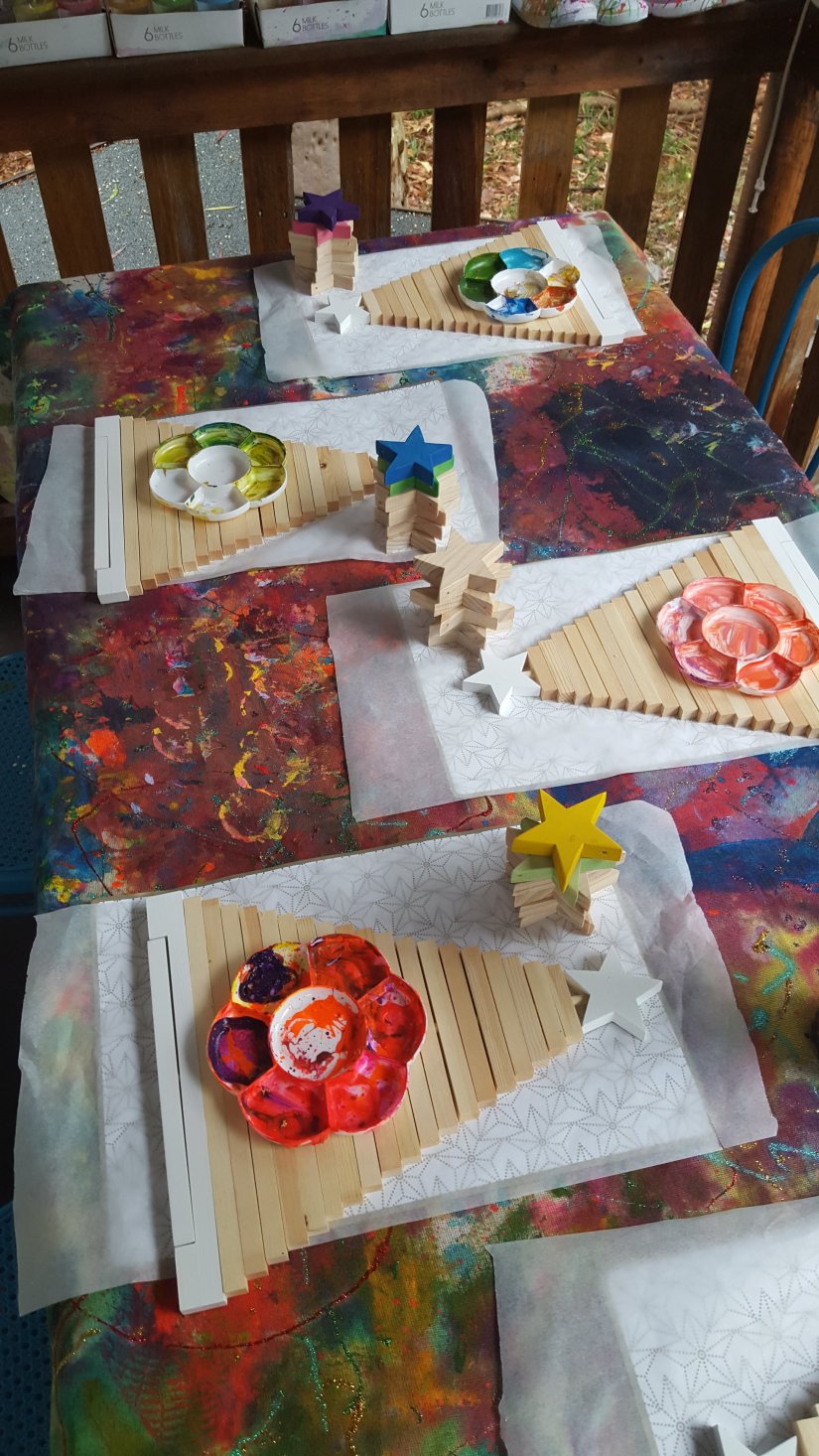 Our beautiful wooden trees. …❤️💚❤️💚❤️💚 Children are amazing! Constantly inspiring adults to let go, be in the moment and choose any colours. … not what they are “supposed” to be!!!! Aren’t these magical wooden Christmas trees!? Kmart usually have them, and i did see some @therejectshop #christmastree #childrencrafts #kidscrafting #christmas