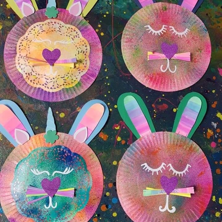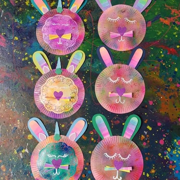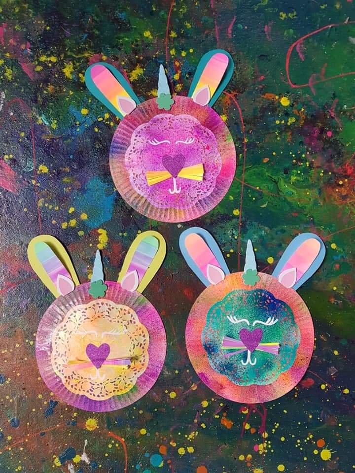 And……….. Unicorn paper plate Easter Bunnies aswell Easter bunny paper plate craft! Paper plate craft is perfect for budget craft activities, we used paint sprays in a bottle to get this effect and watercolour ears, posca markers for the eyes, & cardboard for the nose, there are sooooo many brilliant ideas for Easter, its exciting! Hope you feel inspired too!!! ☀️☀️☀️ #paperplateideas #bunnycraft #easter #kidscraft #kidscrafting #paper #cardboardcrafts #paperplatecrafts #paperplate #kawaii #cute #eastercraft #bunny #crafty #craftykids #kidscrafts101 #rainbow #rainbowcraft #finemotorskills #art #kidsart #kidslearning #sharpiemarkers #papercrafts #kidslearning #fluro #preschool #schoolcraft #rainbowcraft #tagfromtheheart #easterbunny #unicorn