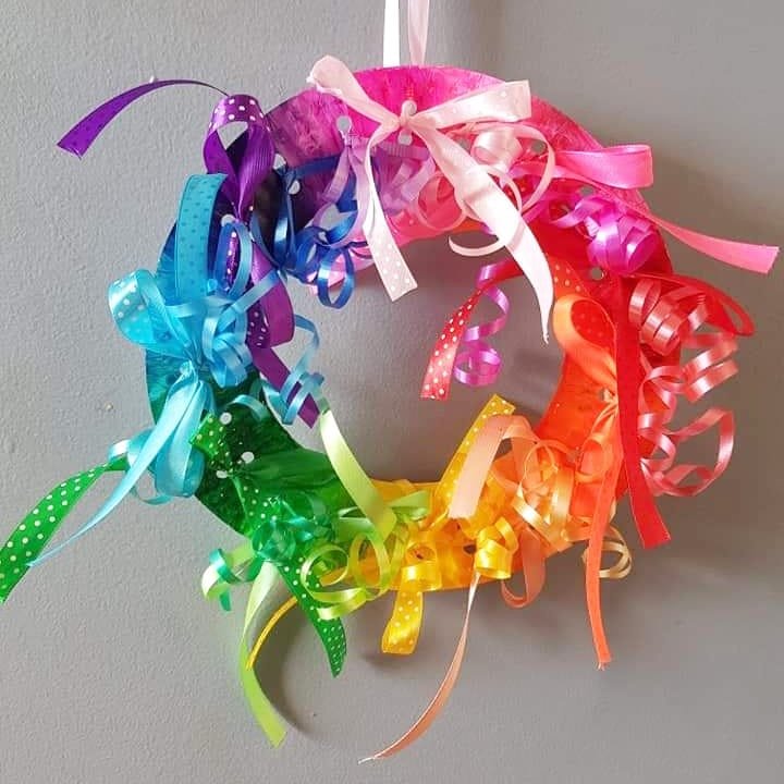 Easter ribbon wreath, simple but so beautiful & bright, super cheap paper plate crafts!!! Curling ribbon and easter polka dot ribbon from @spotlightstores We painted the paper plate wreath with @kwikstixpaint tadaaaaa….. 李❤ #paperplateideas #bunnycraft #easter #kidscraft #kidscrafting #paper #cardboardcrafts #paperplatecrafts #paperplate #kawaii #cute #eastercraft #bunny #crafty #craftykids #kidscrafts101 #rainbow #rainbowcraft #finemotorskills #art #kidsart #kidslearning #easterwreath #papercrafts #kidslearning #ribbon #preschool #schoolcraft #rainbowcraft #rainbowwreath #easterbunny #wreath