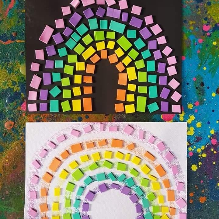 Rainbow mosaics!!! These are super cute & simple, using fine motor skills to cut coloured foam up and stick onto a rainbow, we drew ours with crayons but you could use any paints, pencils, textas, pencils or watercolours & cut up paper or upcycle anything to use. 李❤ #fluorescent #kidscraft #kidscrafting #paper #cardboardcrafts #partycraft #rainbows #teach #crafty #craftykids #kidscrafts101 #rainbow #rainbowcraft #resistart #art #stickers #teachingkids #teaching #papercrafts #kidslearning #foam #preschool #schoolcraft #rainbowcraft #crayon #rainbow #beeswaxcrayons #watercolourpainting #patterns #art #heart #collage #collageart