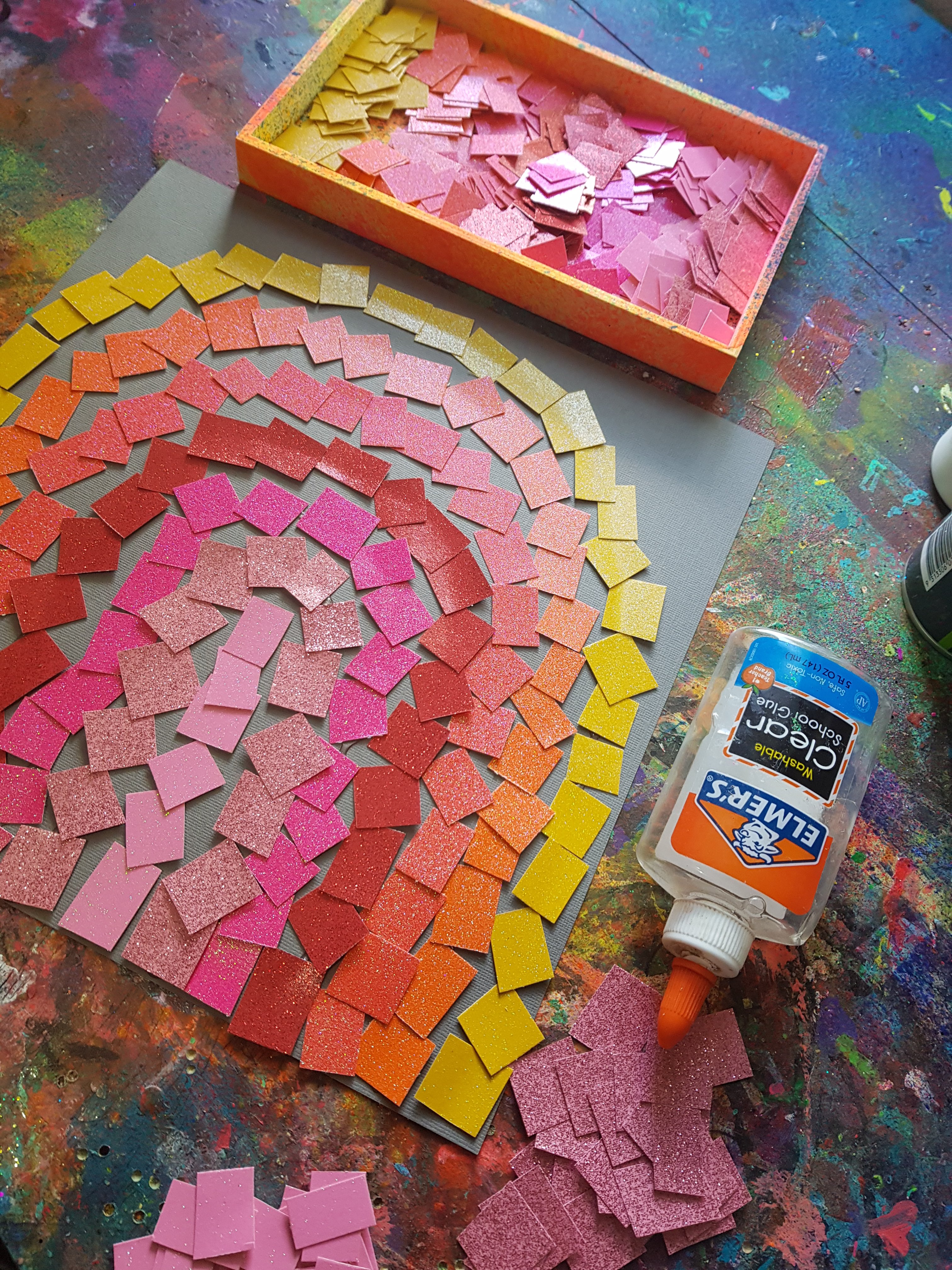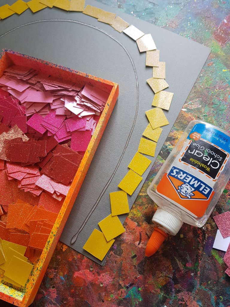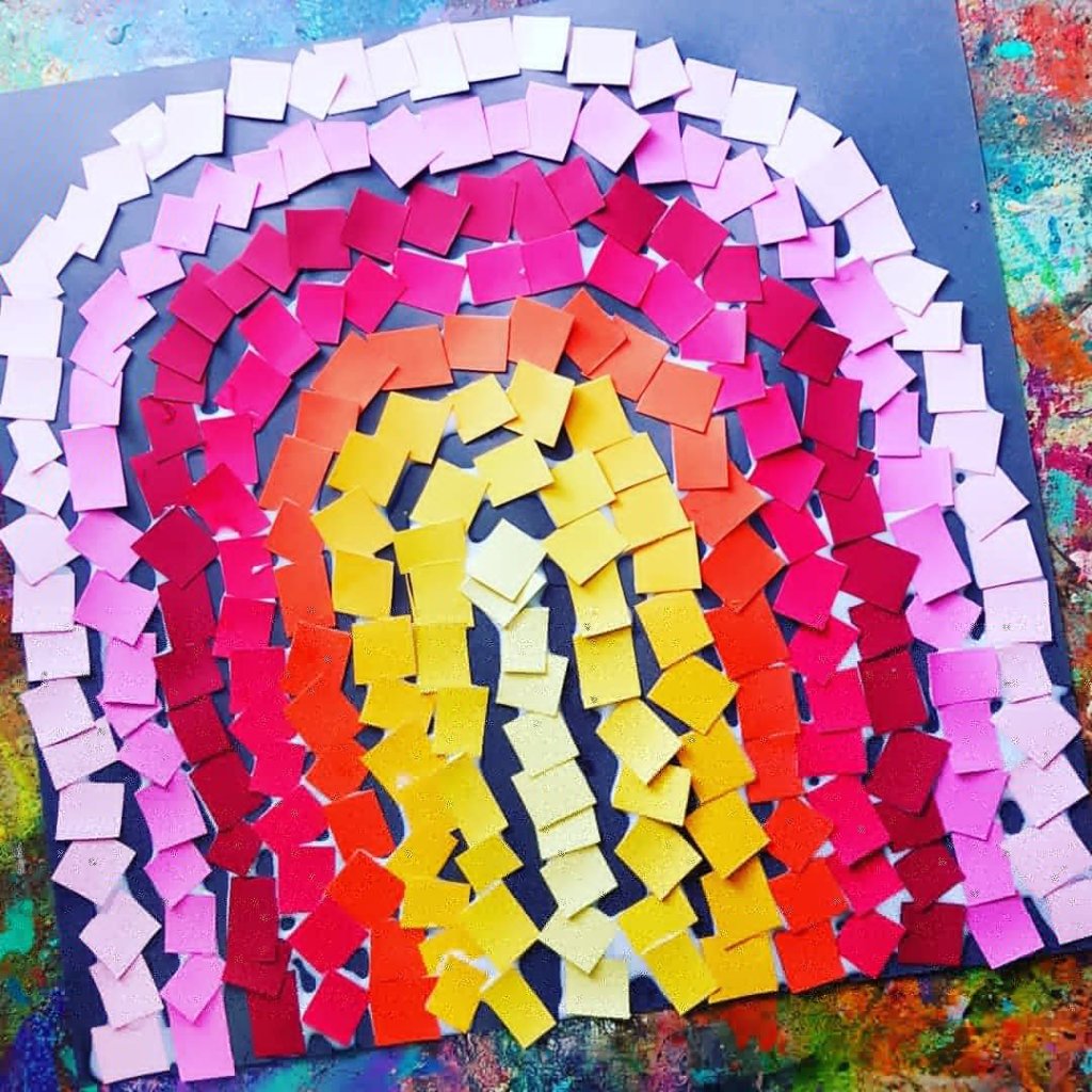 Our sunset rainbow art, using standard coloured paper from @spotlightstores we cut up into squares and made this gorgeous art, almost like a mosaic art piece, the patterns, shapes & designs are endless!!! 李❤ #fluorescent #kidscraft #kidscrafting #paper #cardboardcrafts #partycraft #rainbows #teach #crafty #craftykids #kidscrafts101 #rainbow #rainbowcraft #resistart #art #stickers #teachingkids #teaching #papercrafts #kidslearning #foam #preschool #schoolcraft #rainbowcraft #crayon #rainbow #beeswaxcrayons #watercolourpainting #patterns #art #heart #collage #collageart