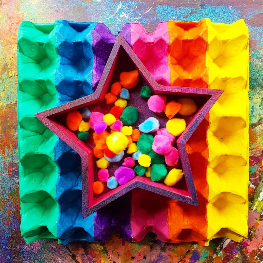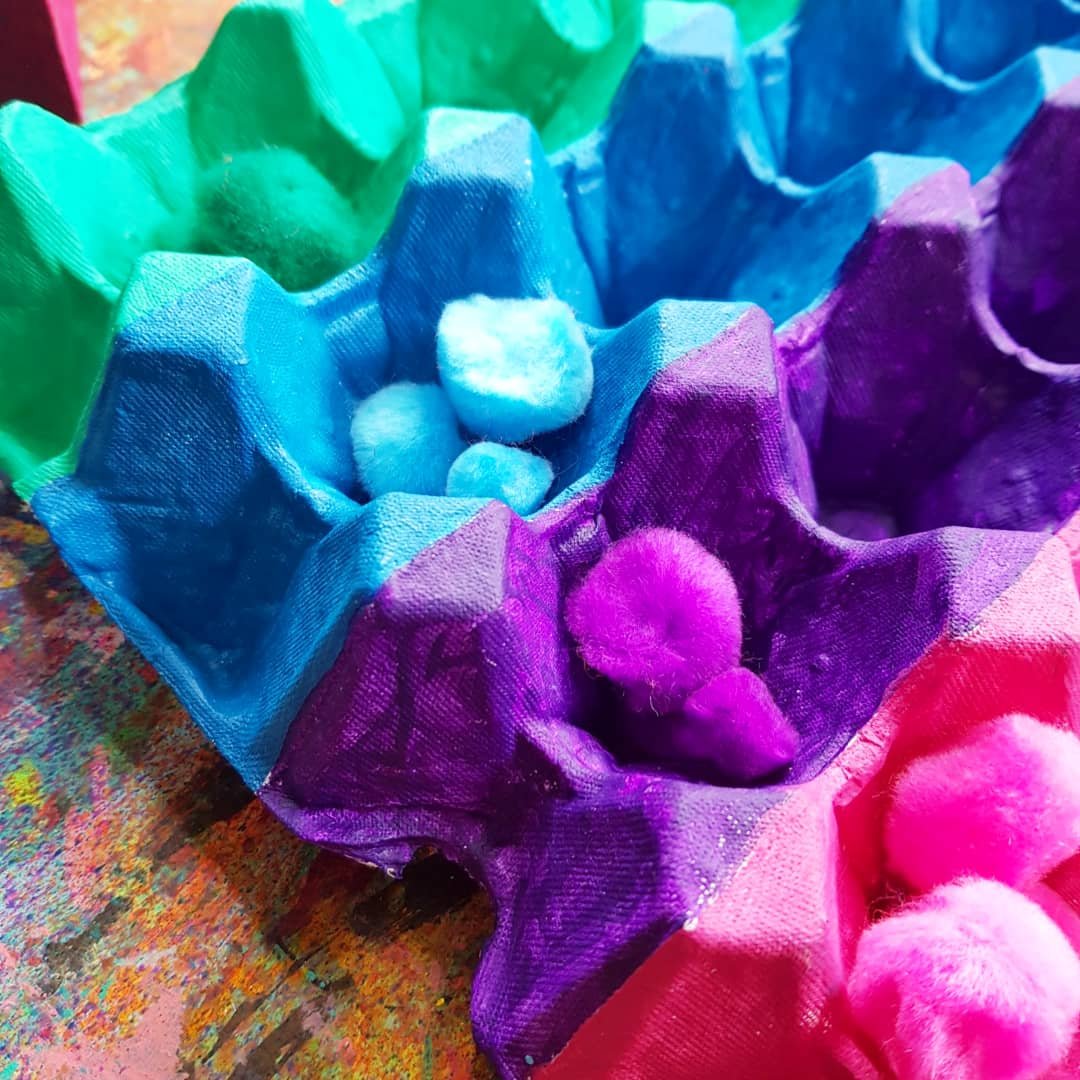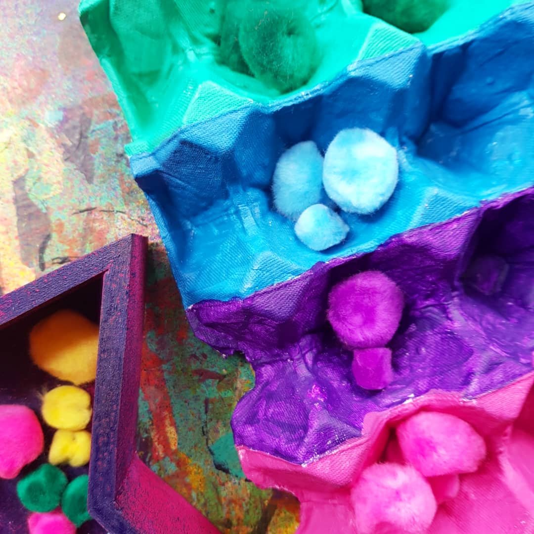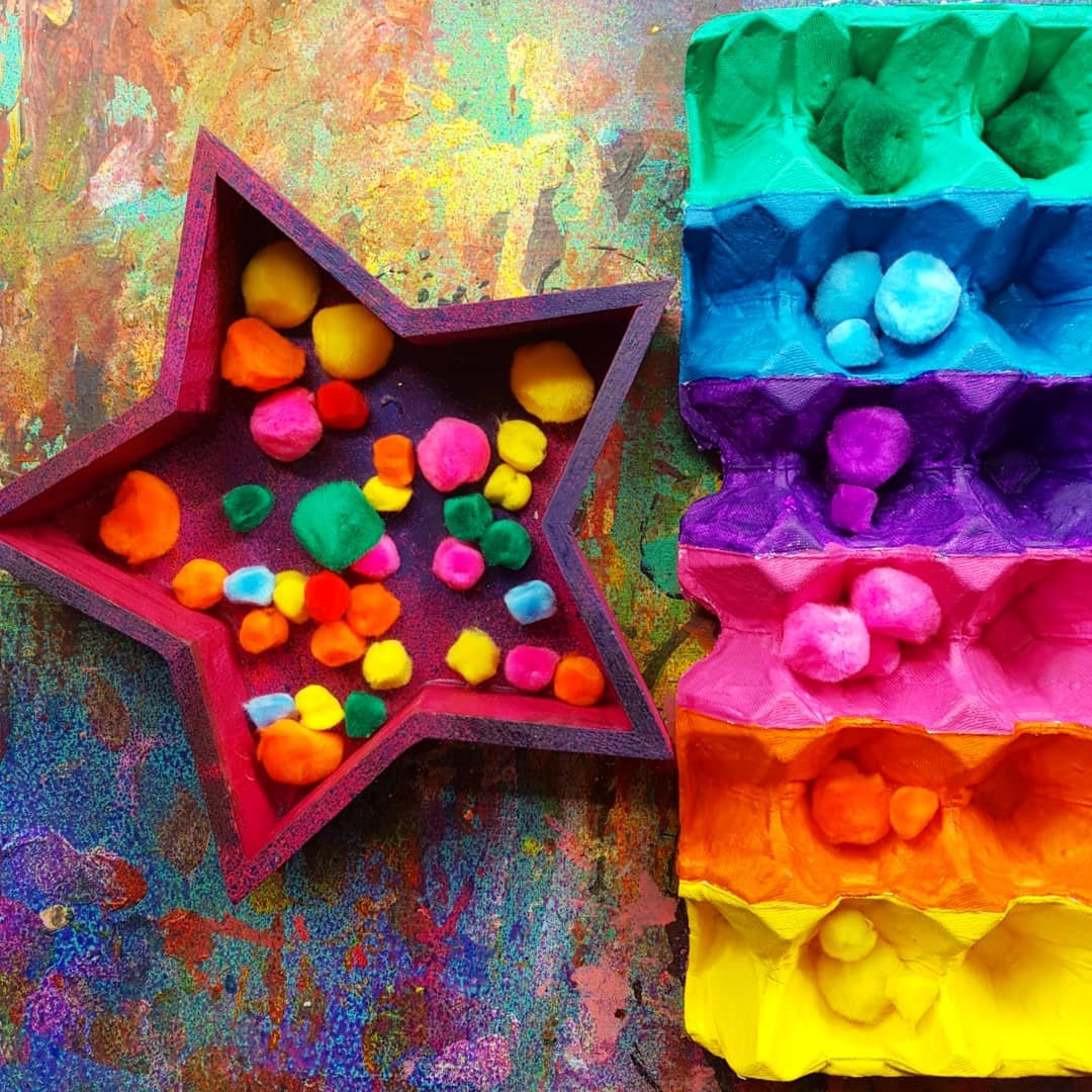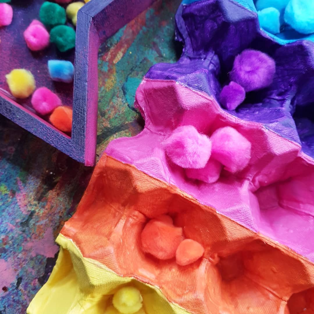 Pom pom colour sorting fun!!! These beautiful fluff balls of sensory goodness are perfect for our colour sorting activity, upcycling an egg tray made of cardboard and our bright pompoms from @krafterskorneraus …. perfect for kids of all ages!!! ❤李 #fluorescent #kidscraft #kidscrafting #paper #cardboardcrafts #partycraft #rainbows #teach #crafty #craftykids #kidscrafts101 #rainbow #rainbowcraft #pompom #pompoms #eggcarton #teachingkids #teaching #papercrafts #kidslearning #preschool #schoolcraft #rainbowcraft #neon #rainbow #acrylicpaint #cardboard #patterns #upcycle #collageart #upcycling #cardboardcraft