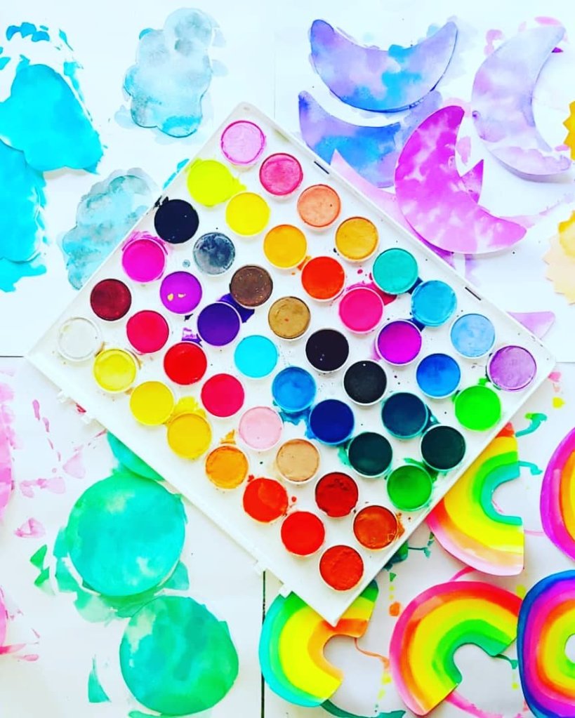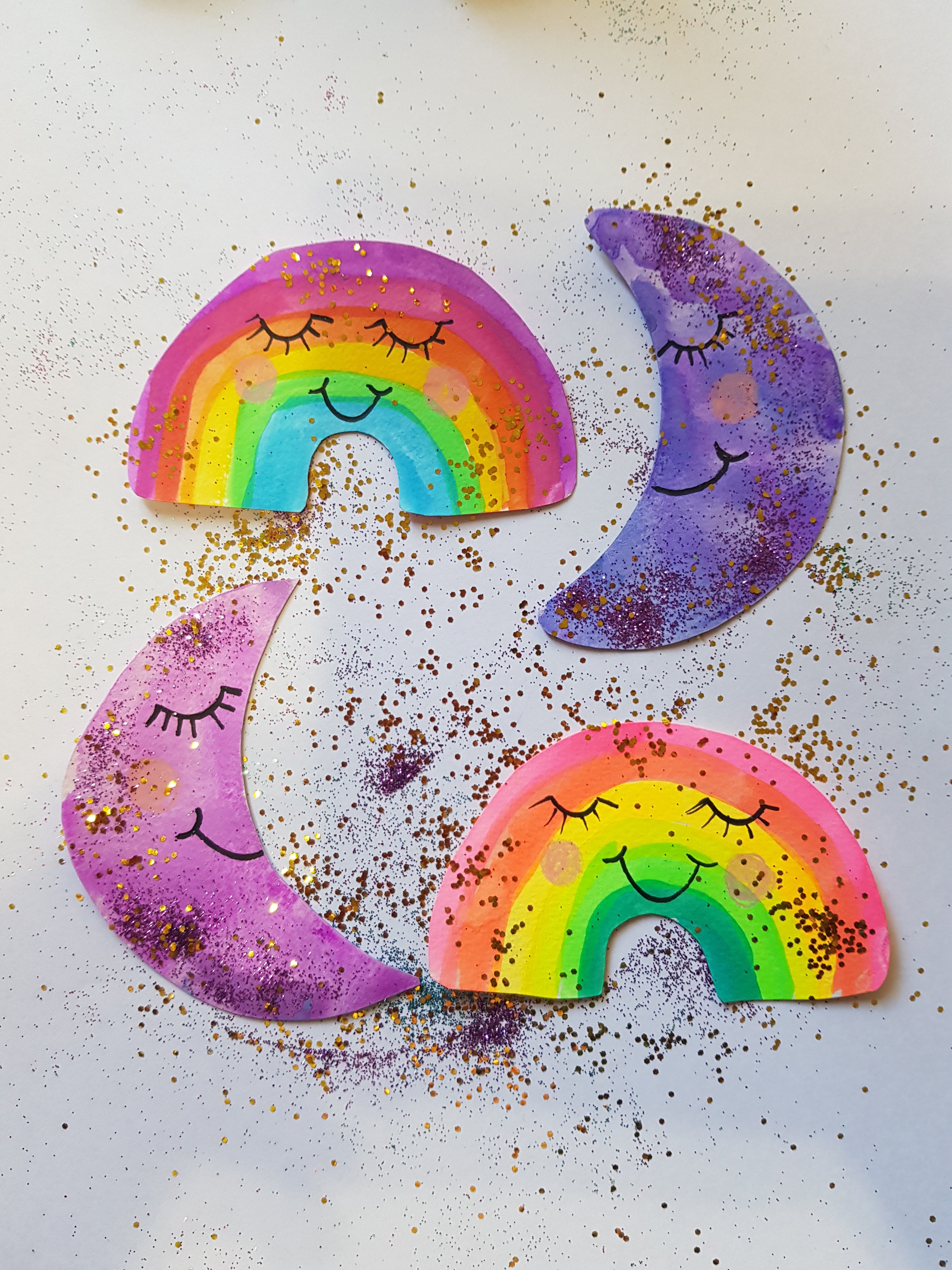 Kawaii cuteness!! Turn any art into sweet kawaii cuteness by adding sweet eyes, smiling face & pink rosey blush. We used the @micador watercolours & a black marker. The shapes were created from gorgeous cookie cutters by tracing the shape. We used our favorite watercolours from @micador… the new 48 colour palette & @earth_glitter to make our little cuties sparkle! ❤李