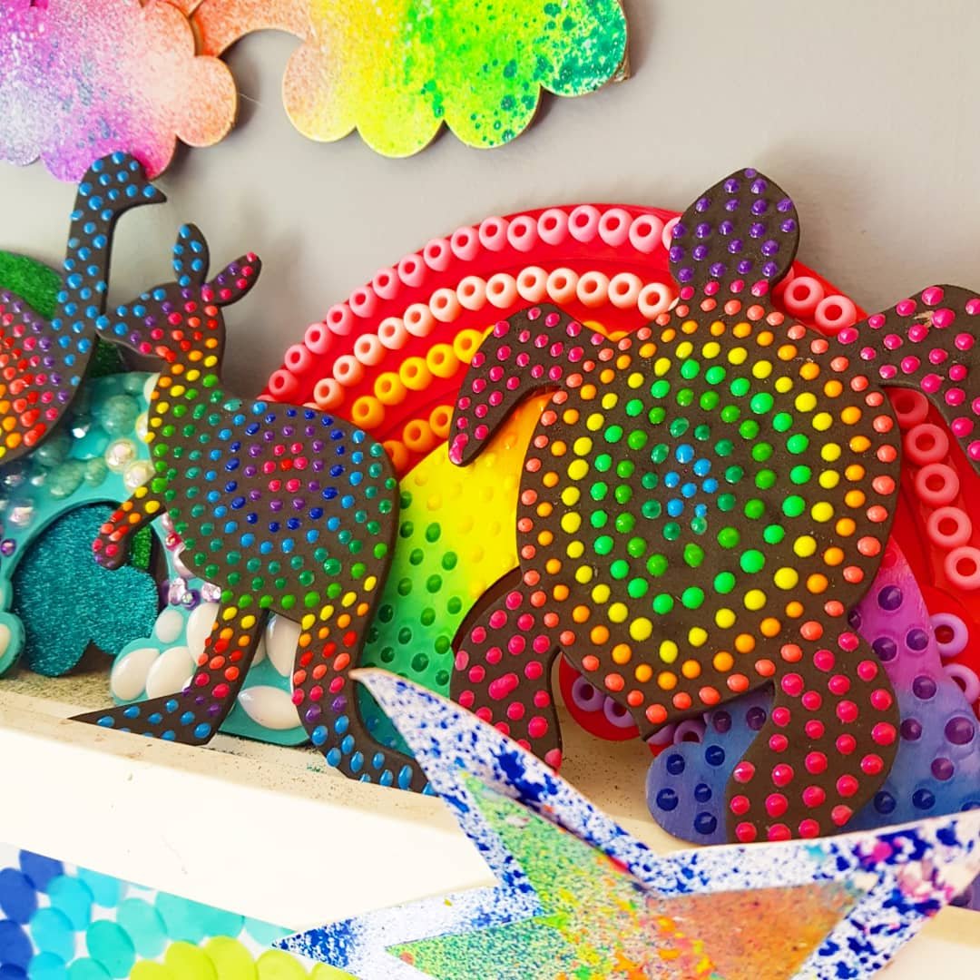 Some simple beautiful dot art, using a sweet kit from @cleverpatch …. the kids loved this activity and they look amazing!!!……. the previous post had the aboriginal coloured dots and we turned them over and used fabric puff paint for some rainbow art on the other side….李❤ #animals #animalcraft #foamart #dot #dotart #dotcraft #australia #australiananimals #diy #diycraft #homeschool #homeschooling #kidsart #kidscraft #learning #teachart #art #kidslearning #childrenscraft #crafty #teaching #teachingkids #rainbow #rainbows #rainbowcraft