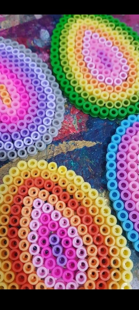 Melty beads kit from @riotartandcraft also the beads are from @ikea_australia hama beads that are so beautiful when they are together, those tiny little circles, its like a meditation or a form of mindfulness making these!!! Patience is the key!!!
