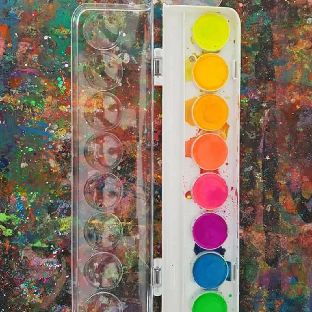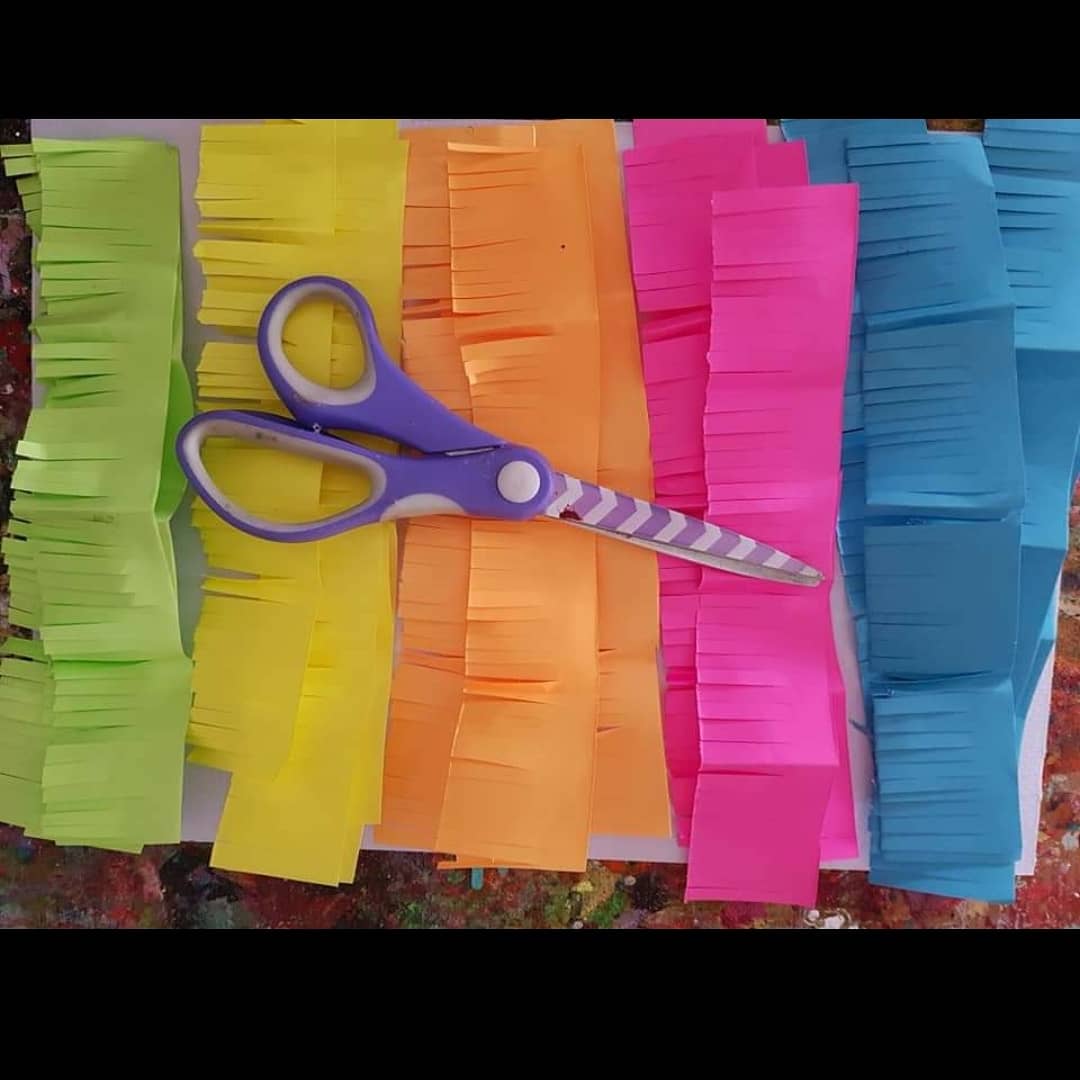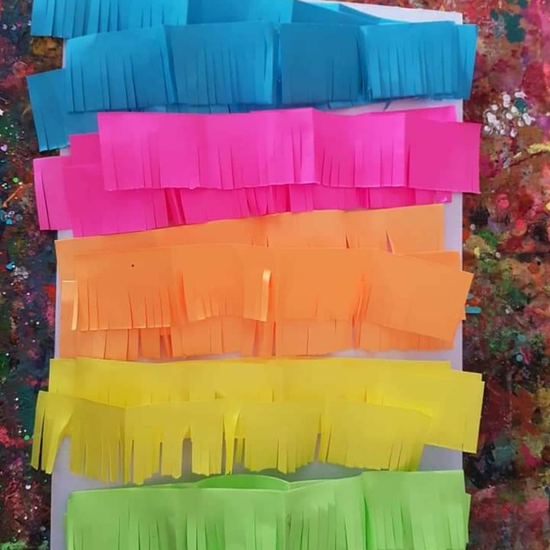 Bright fluro & rainbow paper pinata inspired background for our bunny art!!! We painted on recycled newspaper using fluro watercolours from @micador & fluro paper from @bigwaustralia