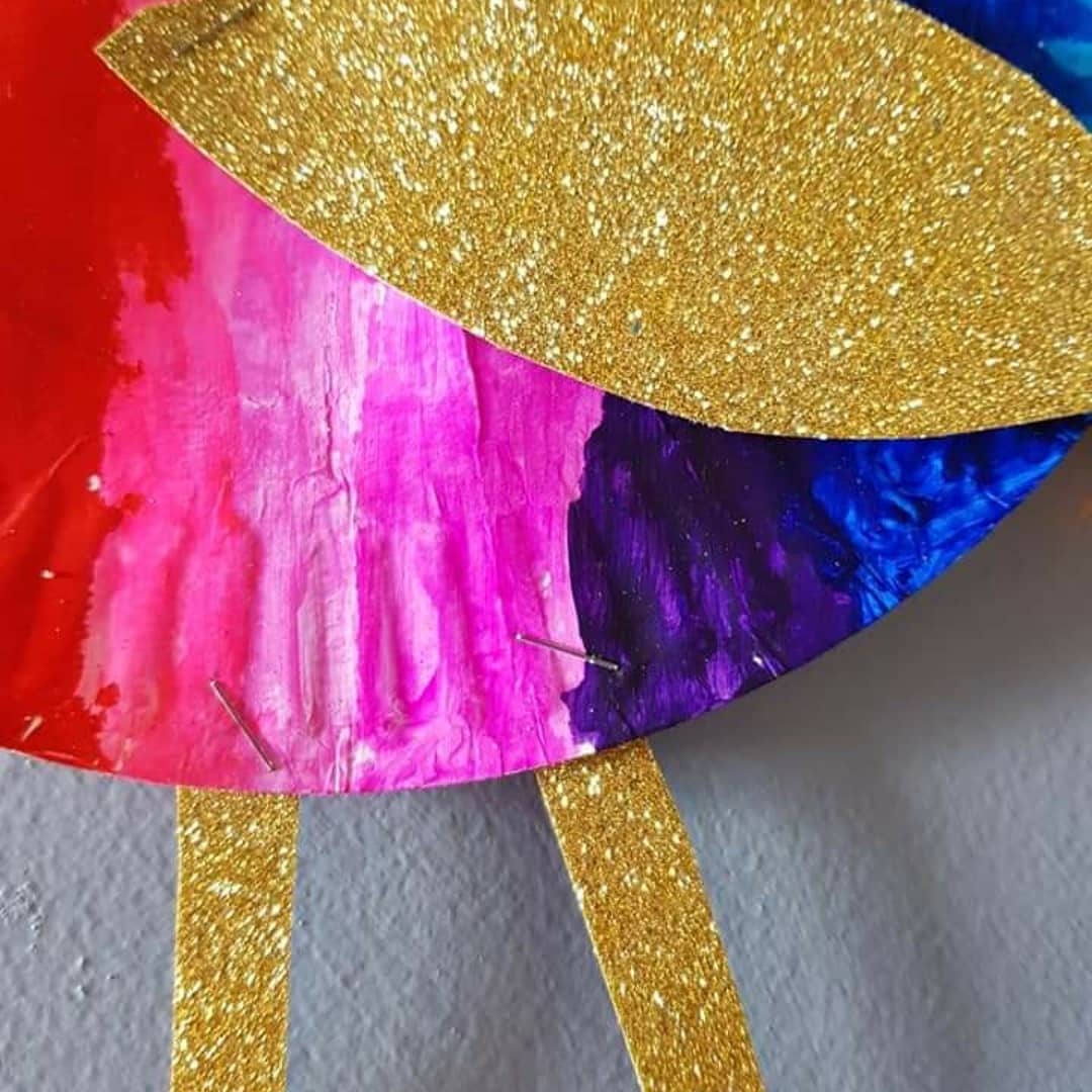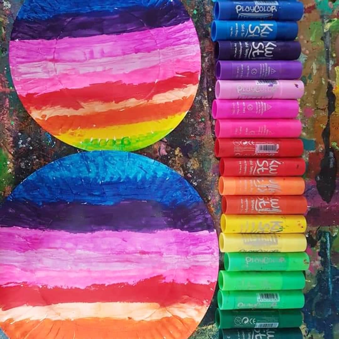Paper plate chicks!!! Our pretty rainbow Easter chickens using @kwikstixpaint on paper plates from the supermarket & gorgeous bright feathers from @spotlightstores ….