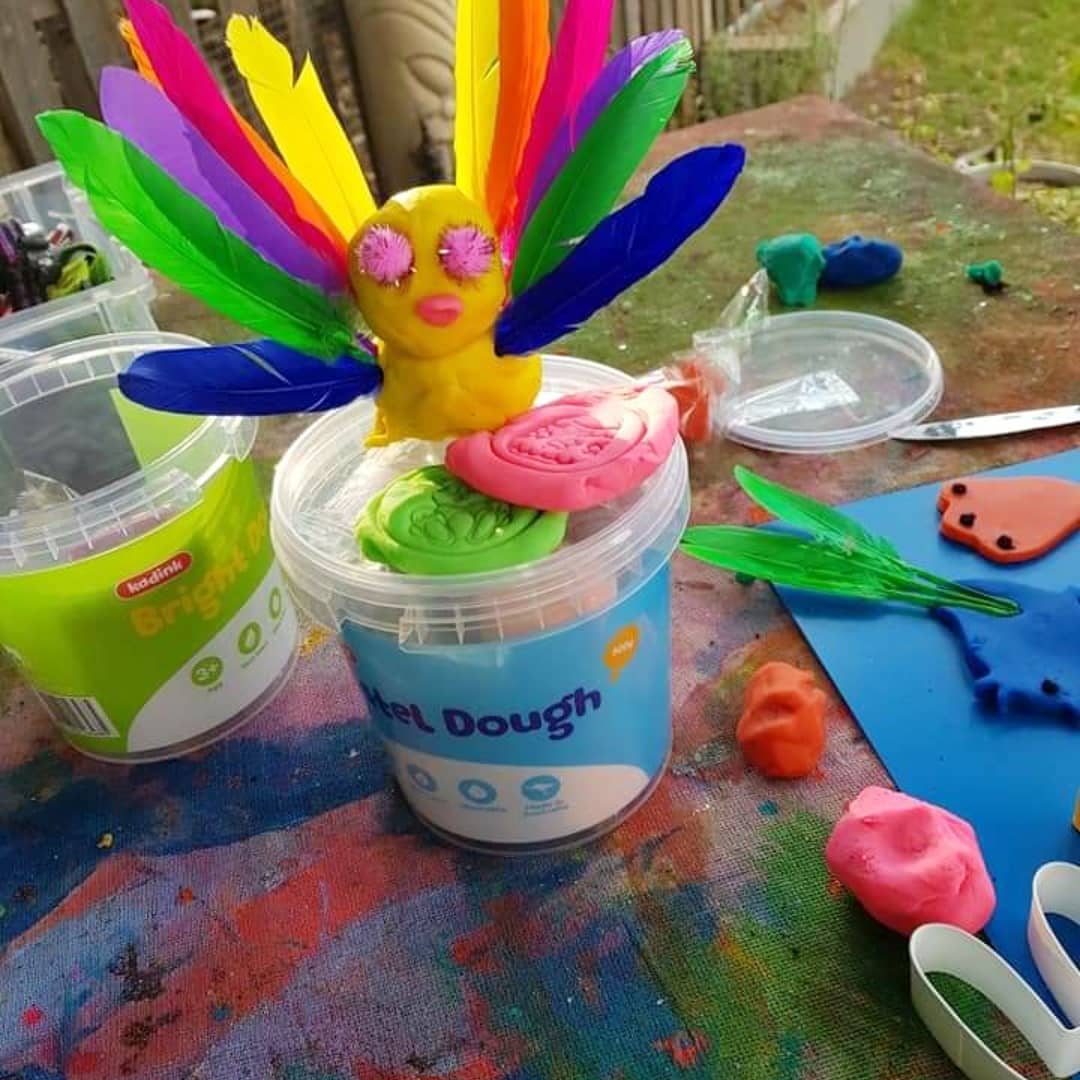 Playdough!!!!!!! Our gorgeous sunny afternoon with playdoh, this week is full of bunny & chickens feathers and couldn’t think of anything cuter than a rainbow feathered Easter chicken!! Search the awesome hashtag #getcreativewith for such fun ideas this week on bunnies!!!! While we were playing, we had some pretty rainbow lorikeet birds eating apples for inspiration….