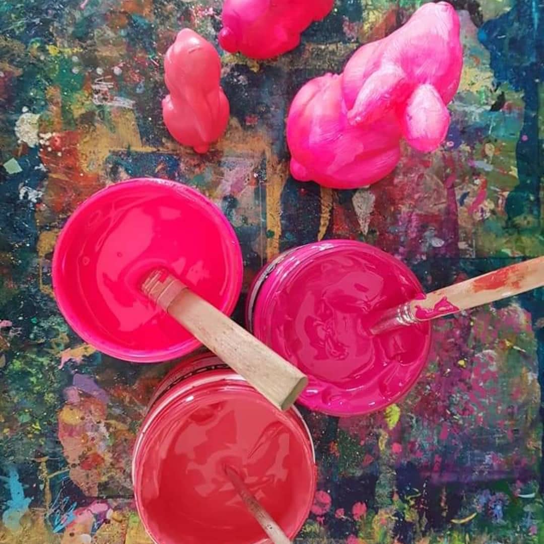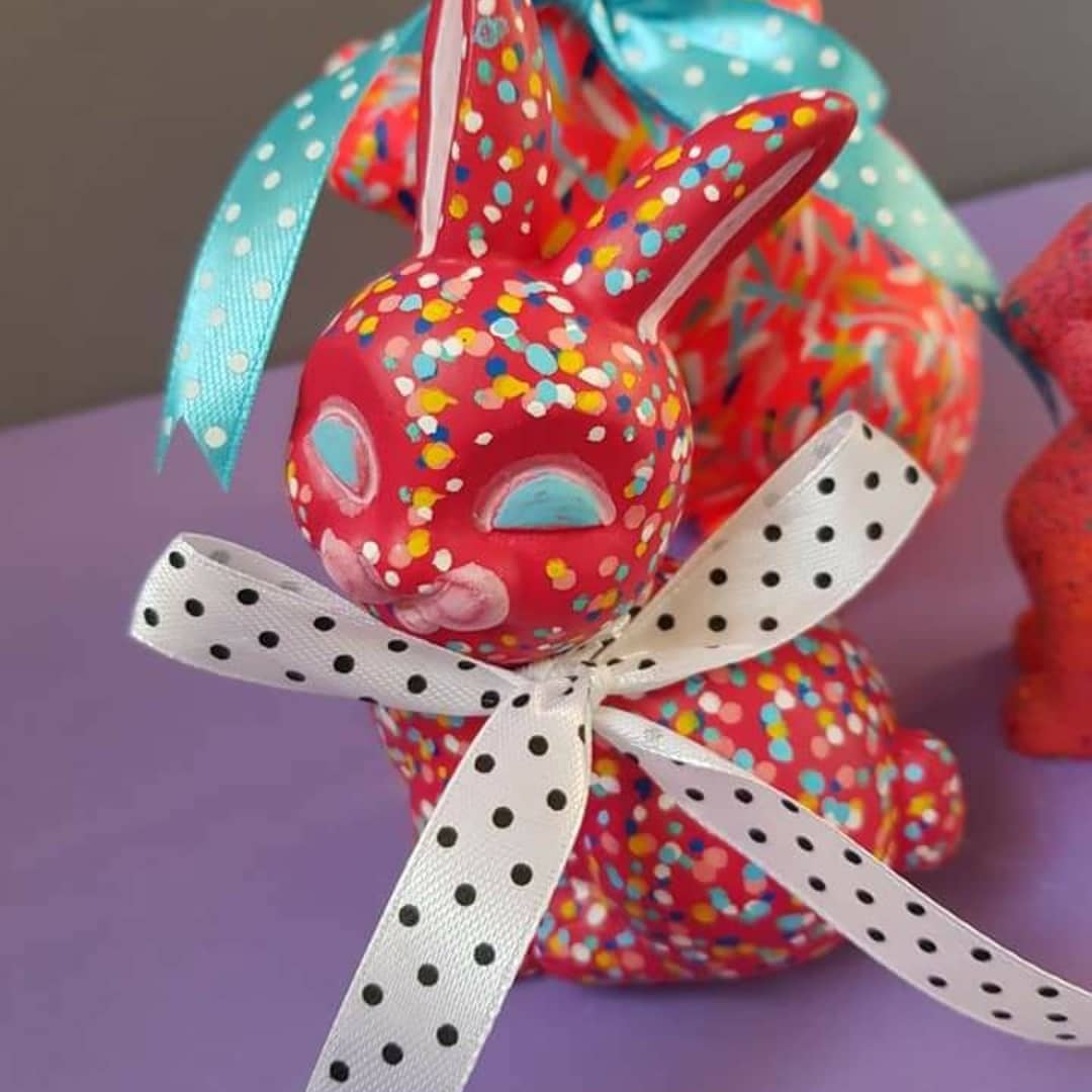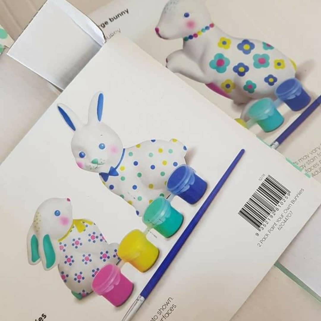 Our cute plaster bunnies from @targetaus love that they are plain like a blank canvas, we used #globalpaints from @riotartandcraft for the base coat and cute sprinkle patterns using posca markers!!!