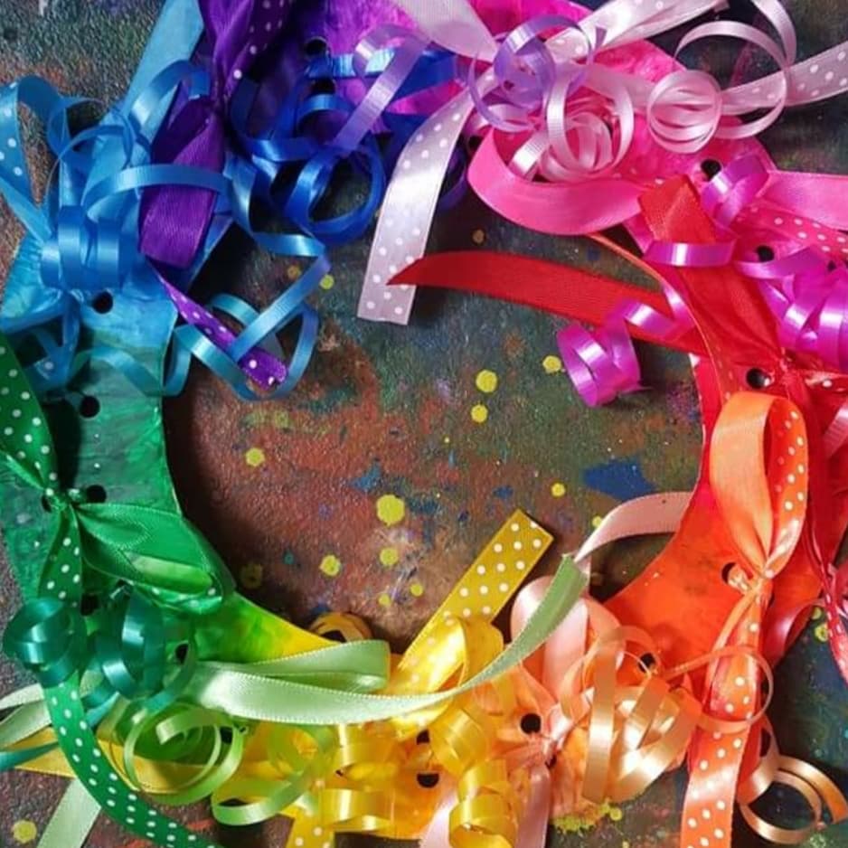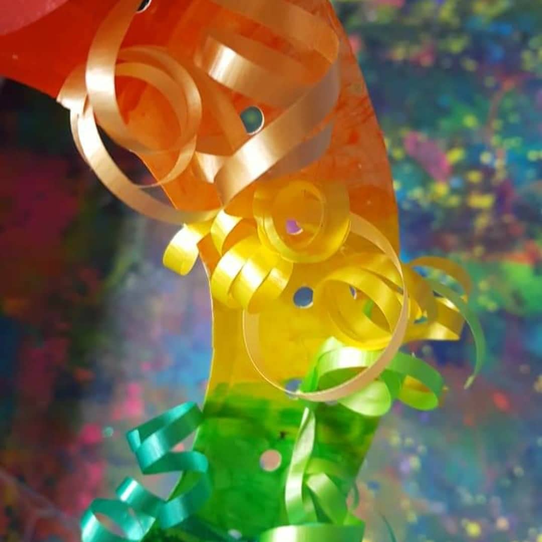 Easter ribbon wreath, simple but so beautiful & bright, super cheap paper plate crafts!!! Curling ribbon and easter polka dot ribbon from @spotlightstores We painted the paper plate wreath with @kwikstixpaint tadaaaaa…..