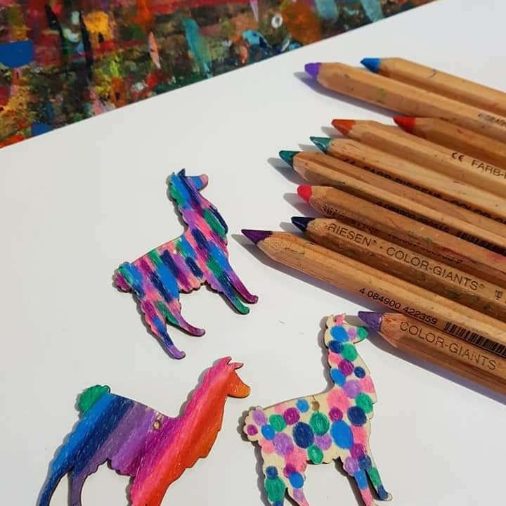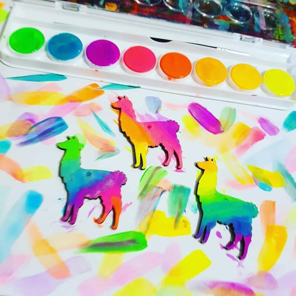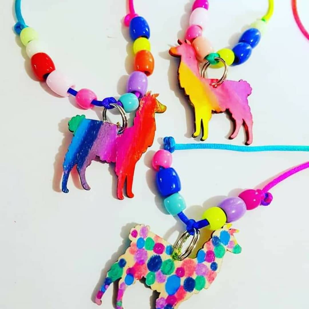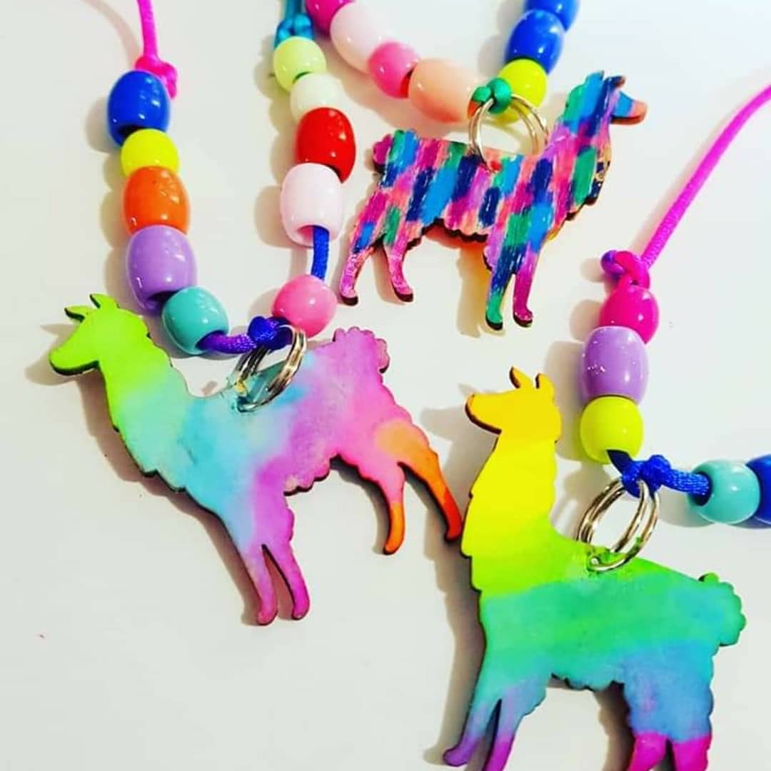 These little wooden alpacas getting a colourful makeover for some beautiful necklace charms, we love our fluro micador watercolours, they aren’t just for paper!!! These paints are from @bigwaustralia for $5 or online at http://www.micador.com.au and our sweet alpacas from @riotartandcraft and i just drilled holes for a charm & gorgeous beads from @spotlightstores