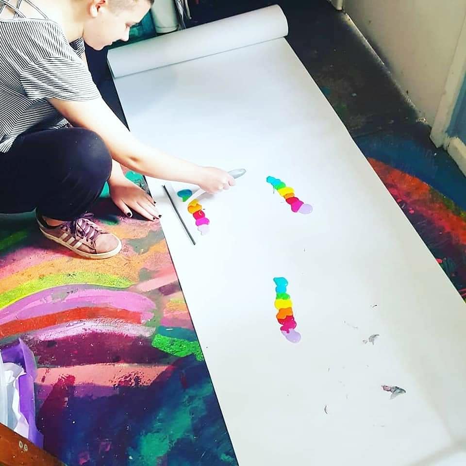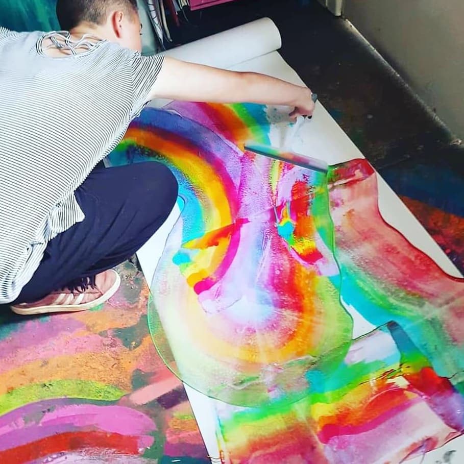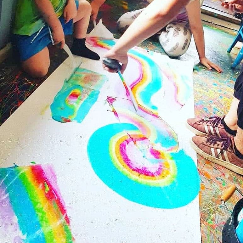 A big fun messy paint project, you can’t help but join in because its so awesome!! Using the techniques from the previous post with squeegee’s and window cleaners!
