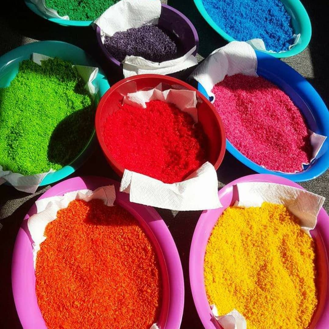 Sensory rainbow rice!!! Rainbow rice!! Coloured rice! Simple. Fun …… sensory play!!! Endless possibilities for all ages! We used rice from the supermarket,Β you can google or check out pinterest for different ways to colour or dye the rice, we used food colouring, a splash of vinegar or rubbing alcohol in a zip lock bag or container, shake around until rice is covered, we put our rice out on a tray to dry in each colour batch, then once dry, mix all the colours together!!