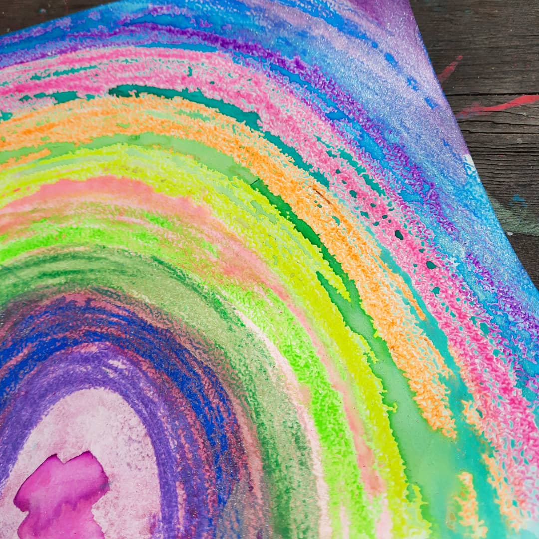 Our favourite go to activity is the good old resist art using oil pastels & watercolours, they always look so magical and the colour combinations are so pretty!! Our art supplies from the wonderful @micador