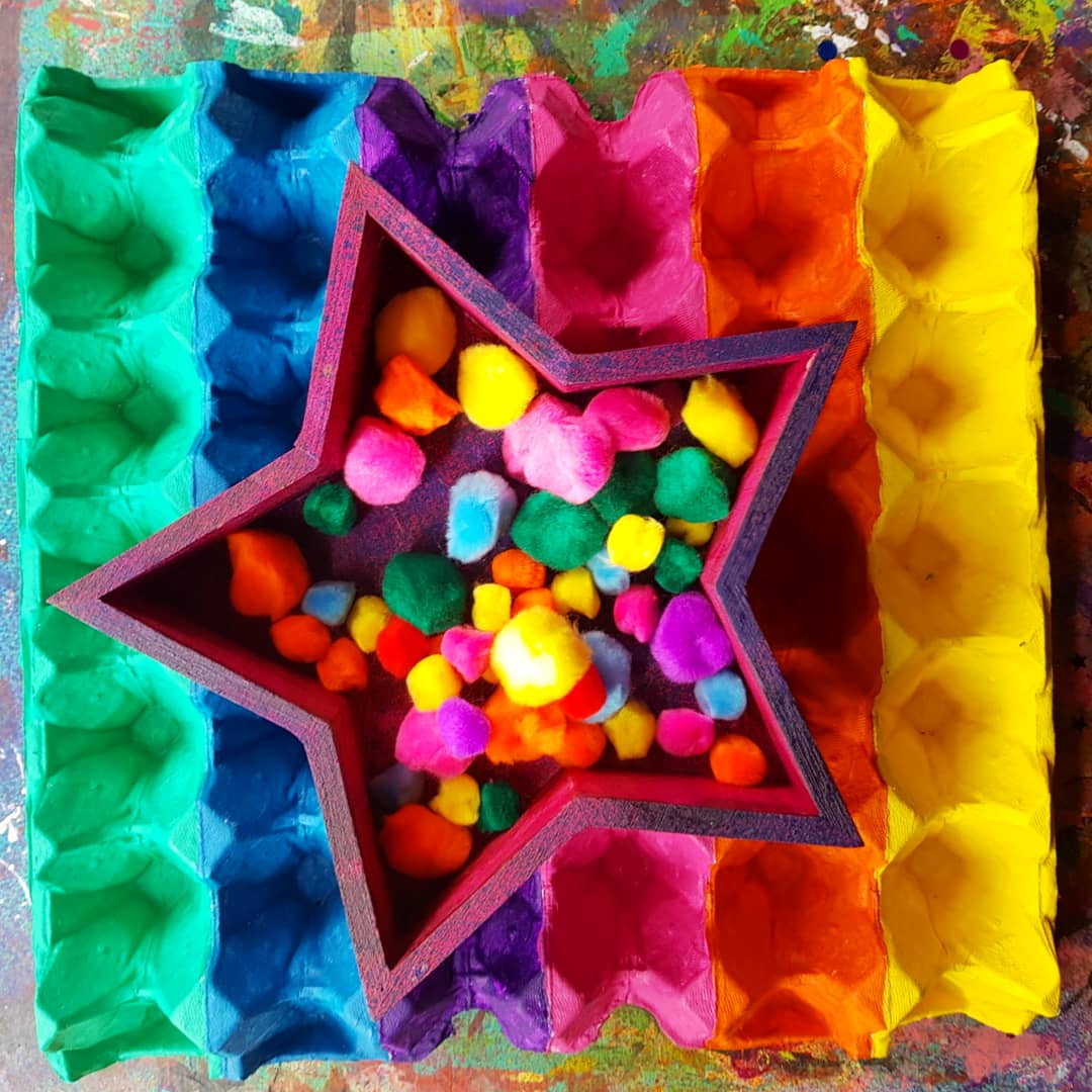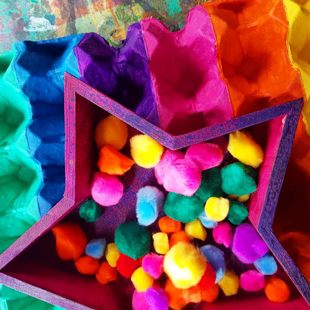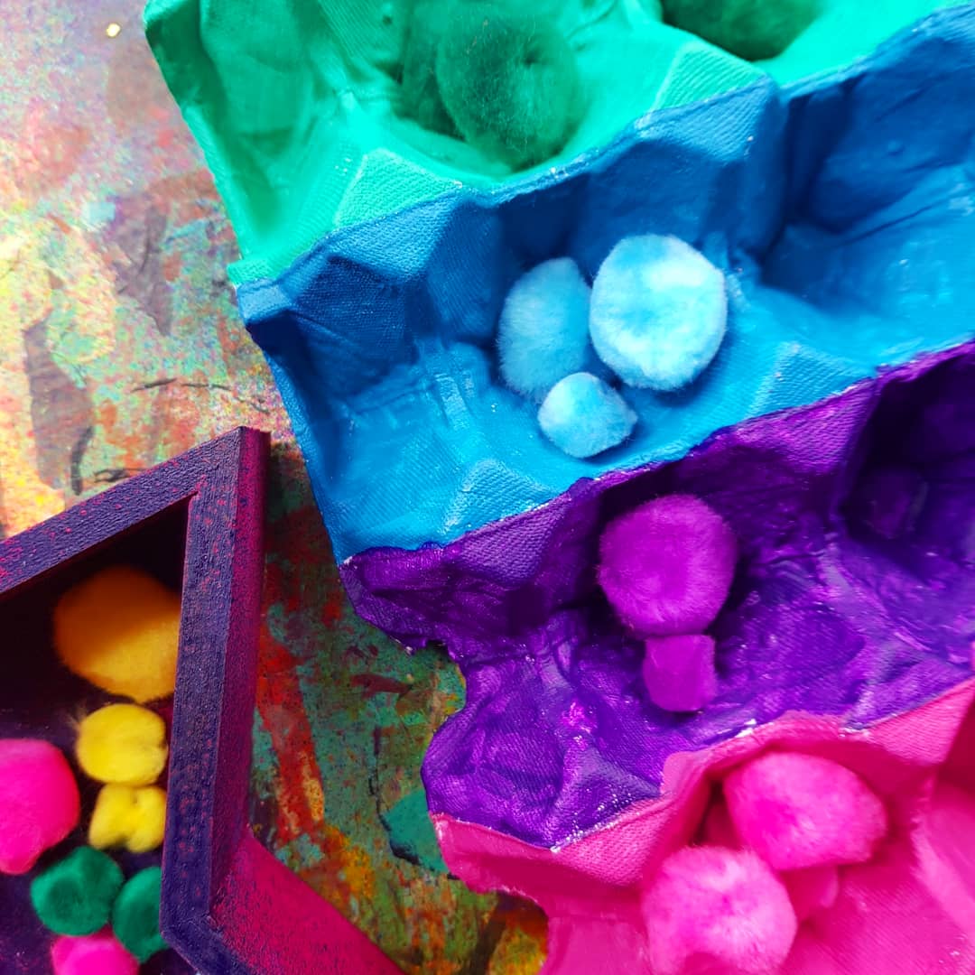 These beautiful fluff balls of sensory goodness are perfect for our colour sorting activity, upcycling an egg tray made of cardboard and our bright pompoms from @krafterskorneraus …. perfect for kids of all ages!!!