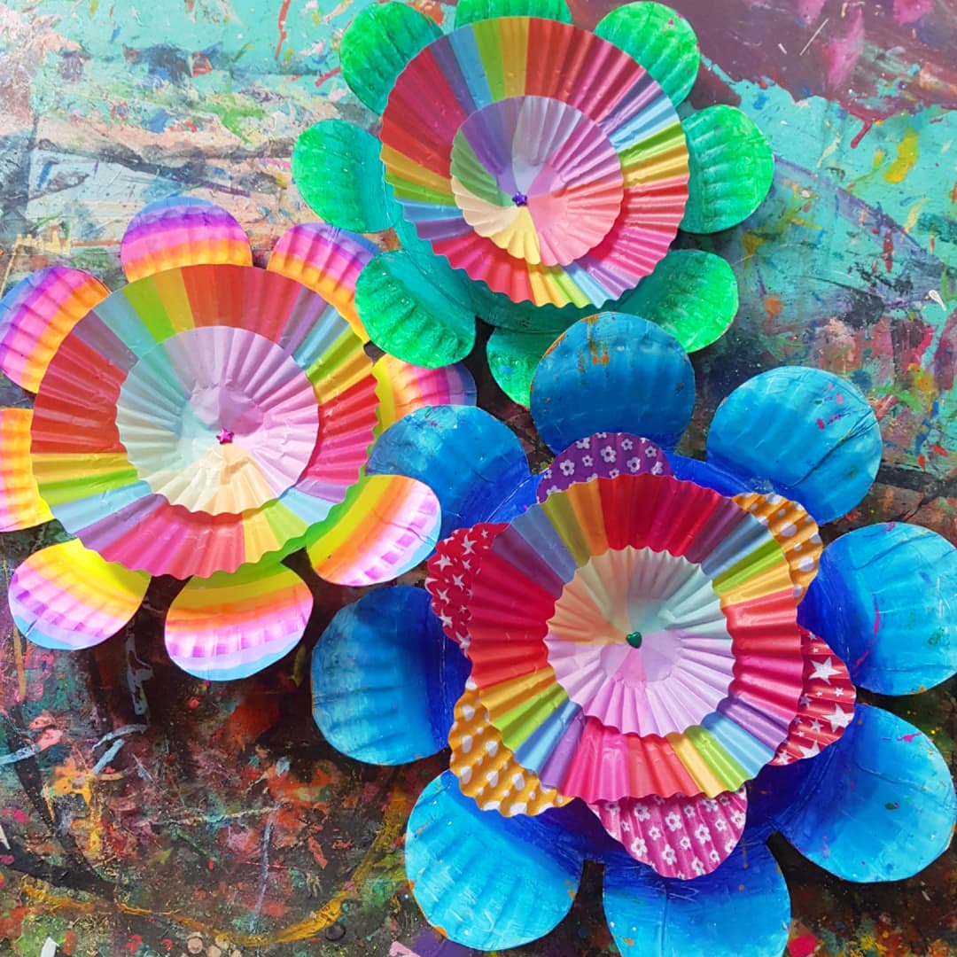 Paper plate and paper pattie cake flowers! Cupcake pattie paper, arenβt they pretty, so effective layers different sizes paper making these sweet flowers! We bought the paper plates from @colessupermarkets or @woolworths_au for $2 packet of 20, such a bargain. Oil pastels & watercolours from @micador Hope you feel inspired to create!!