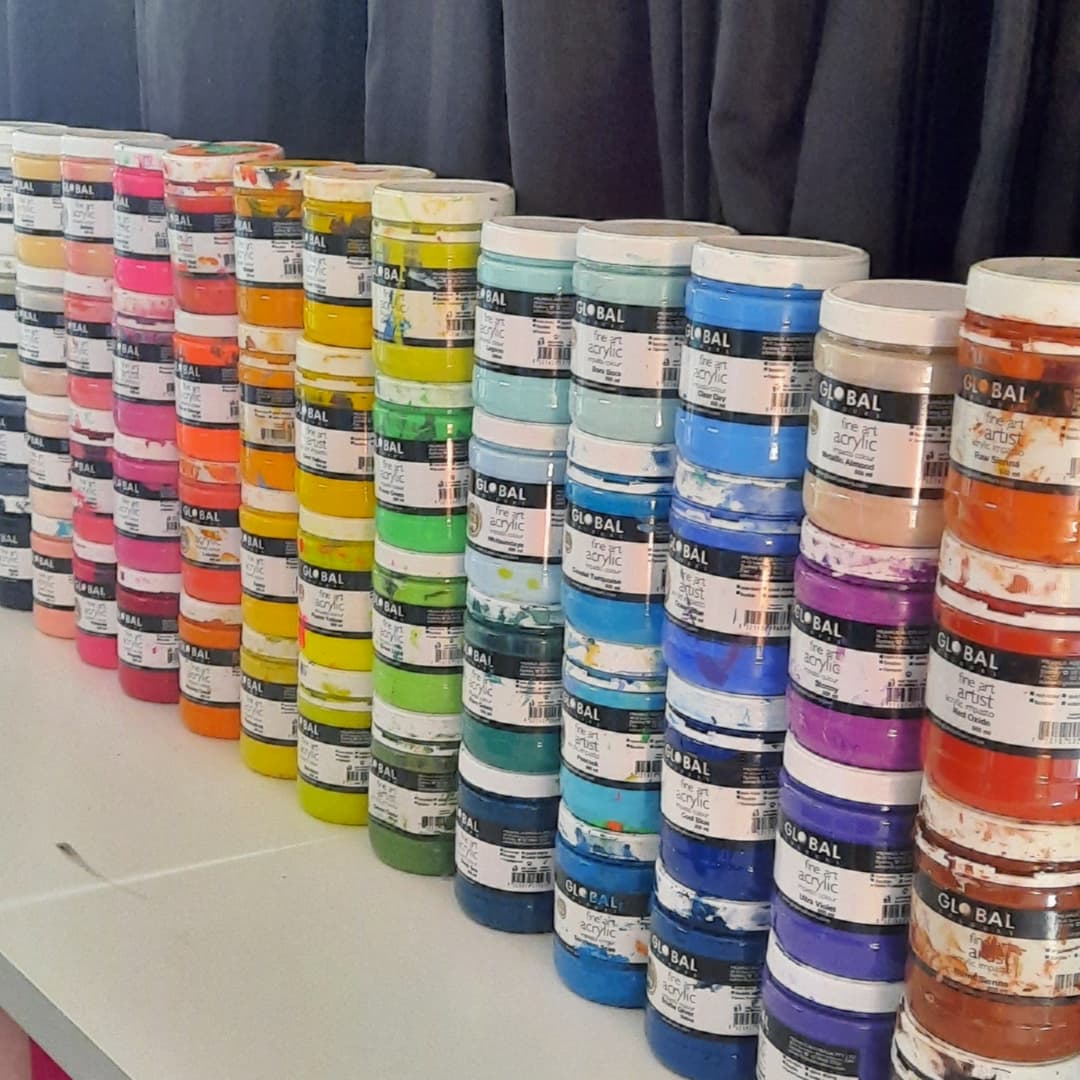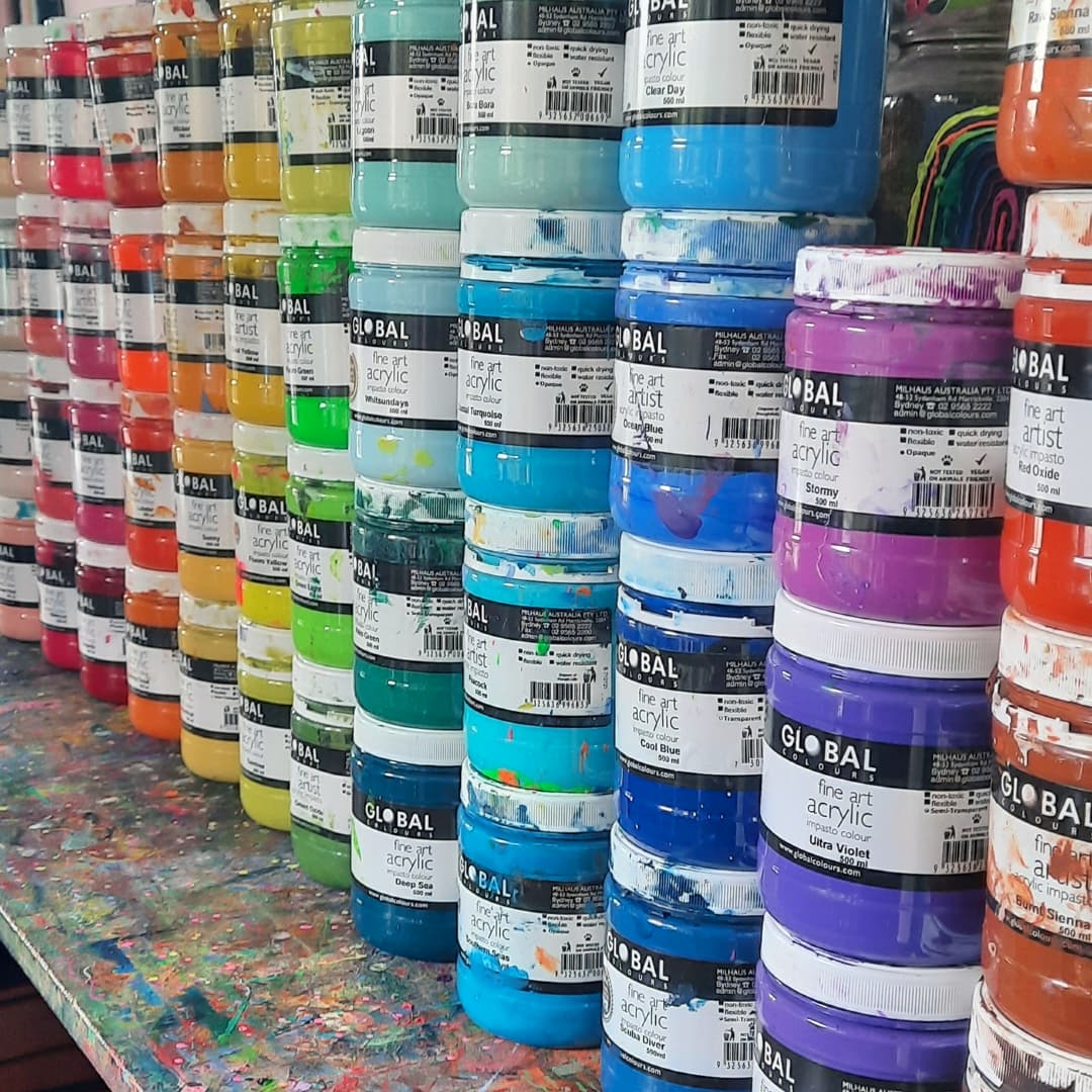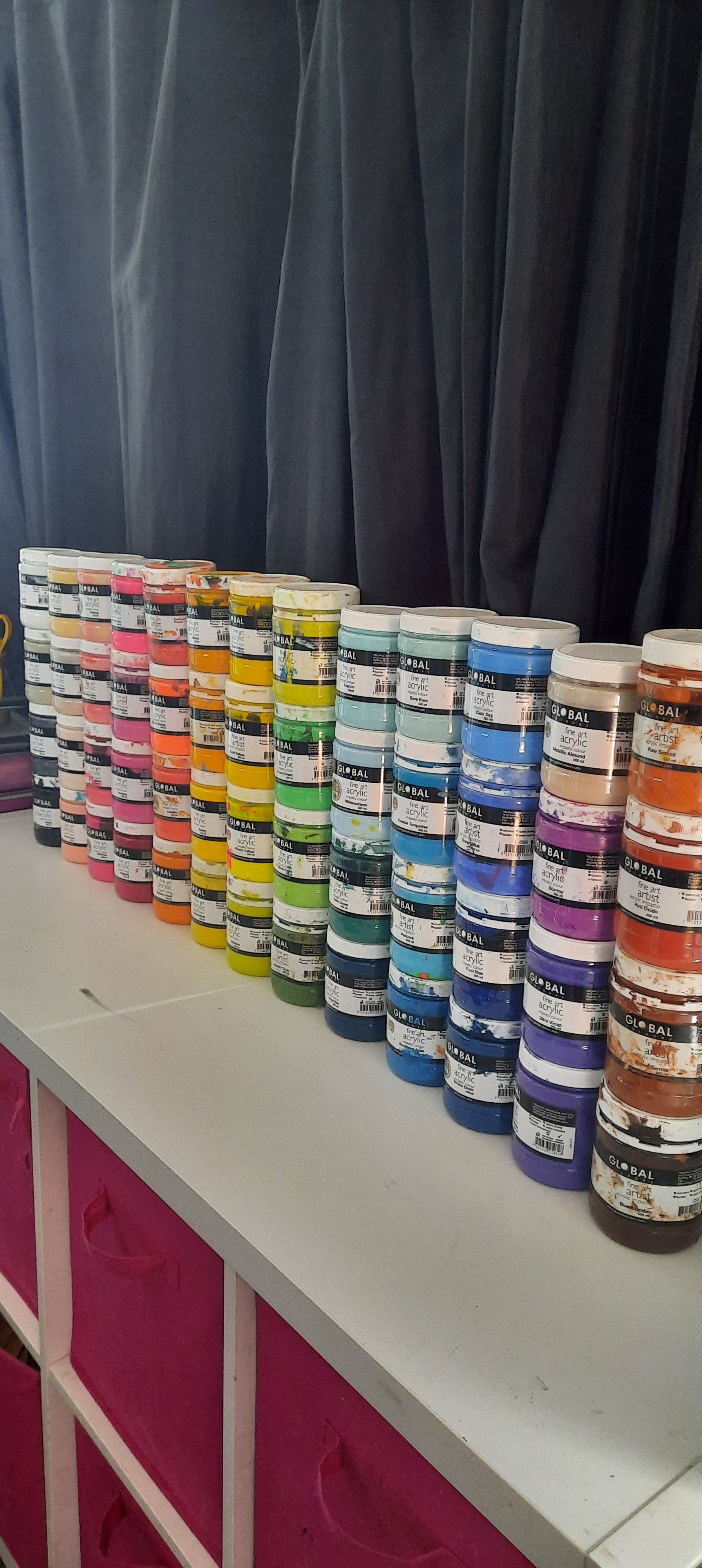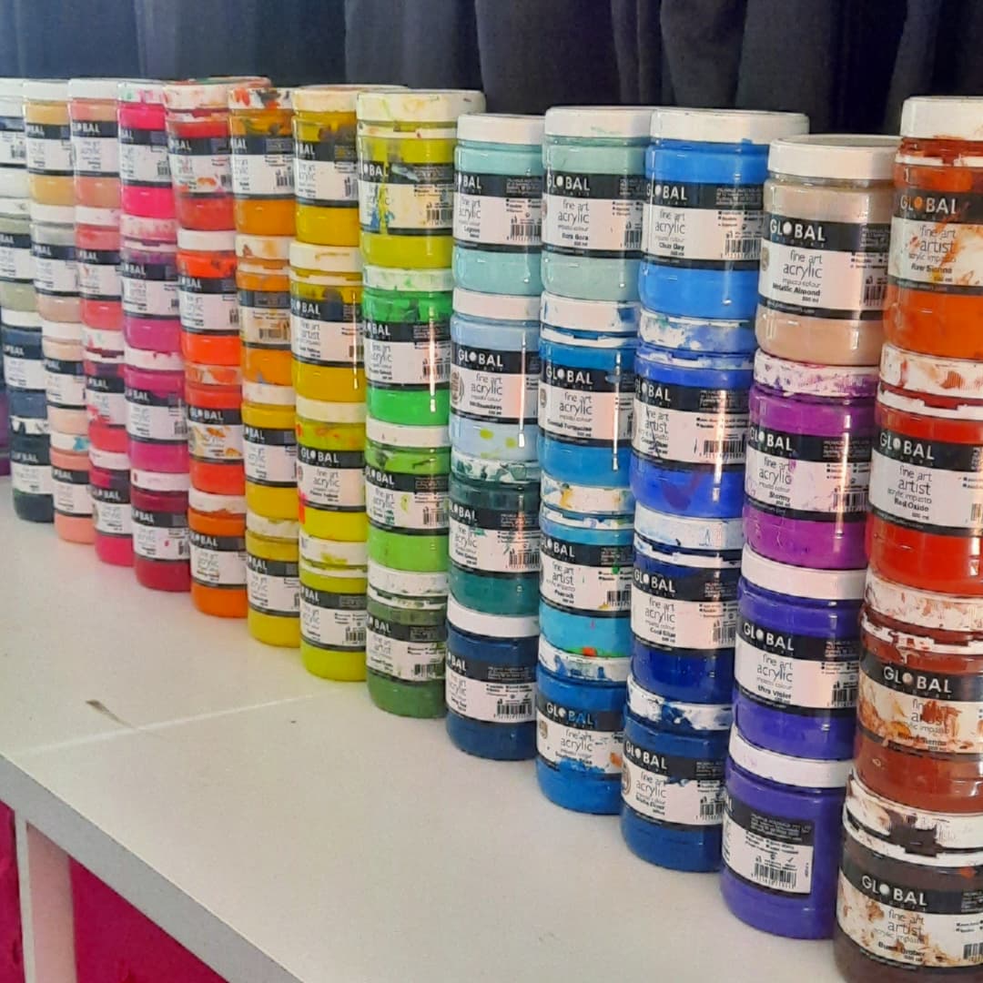 Rainbow happiness right here, feeling the feels of lockdown for another 2 weeks in Sydney so does anyone else organise art supplies!!?? Hehehe…. missing a few new colours like the amazing coral & turquoise but otherwise… these are my absolute favourite acrylic paints by an awesome Aussie team @globalcolours in my local Sydney area!! I’ve been using these for over 10years and just keep adding to our rad rainbow collection….. our magical rainbow wall of paints!!!! Delicious!!