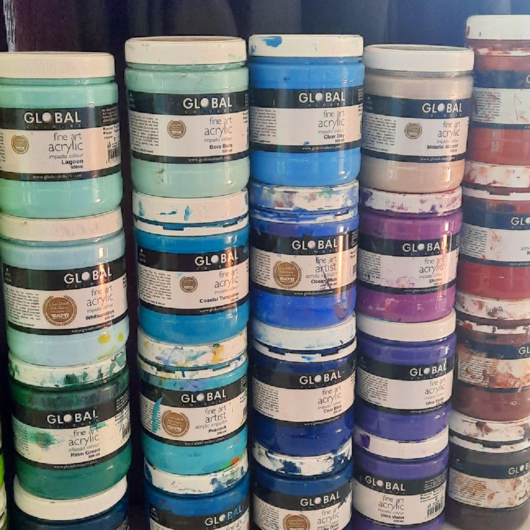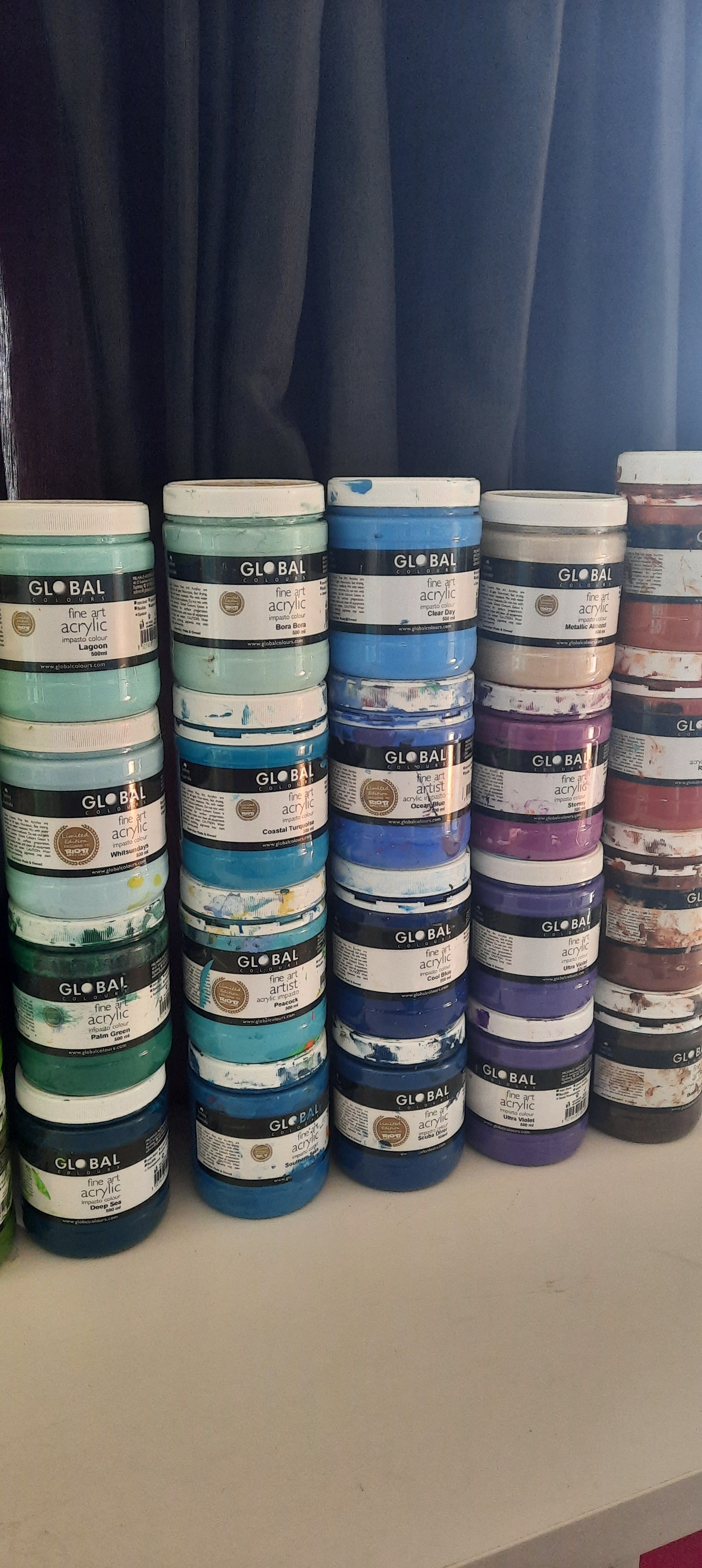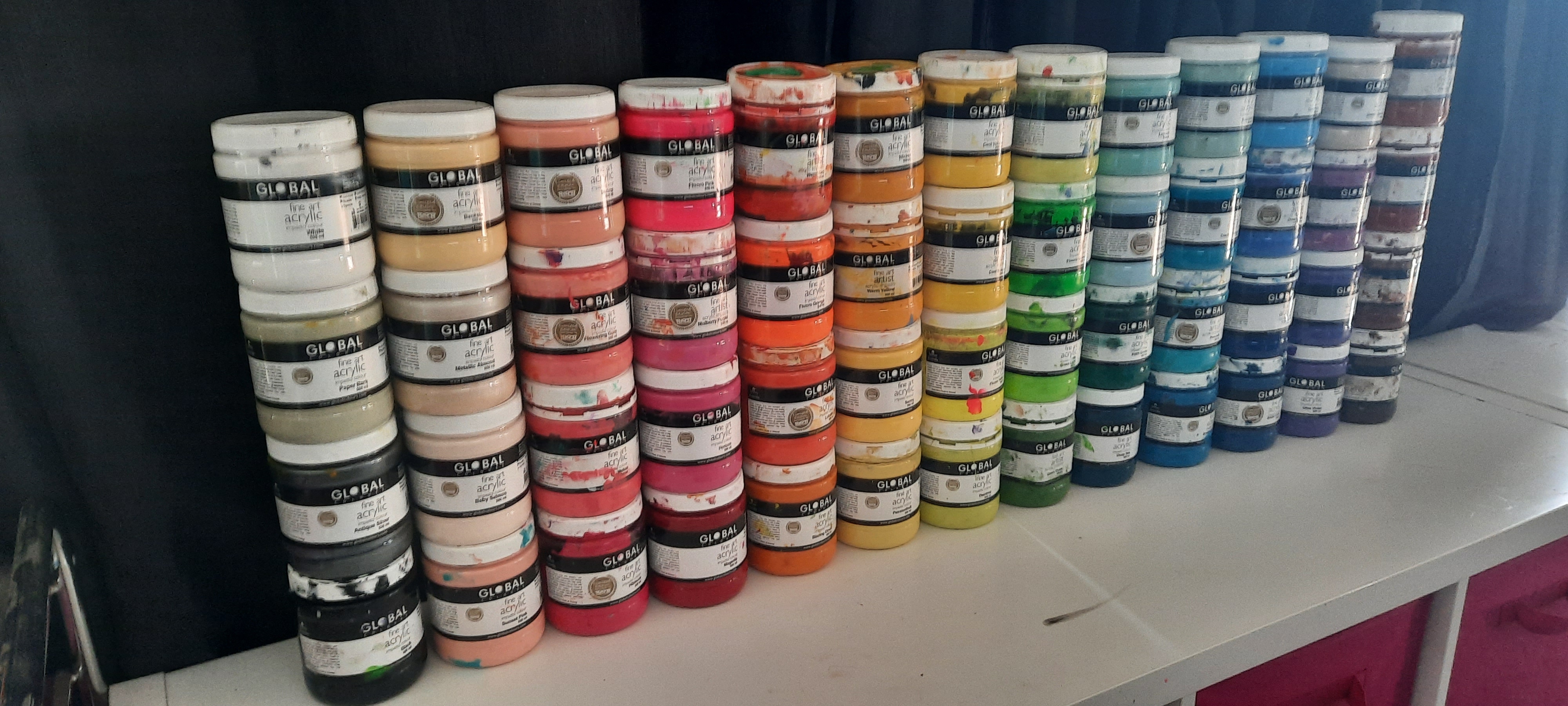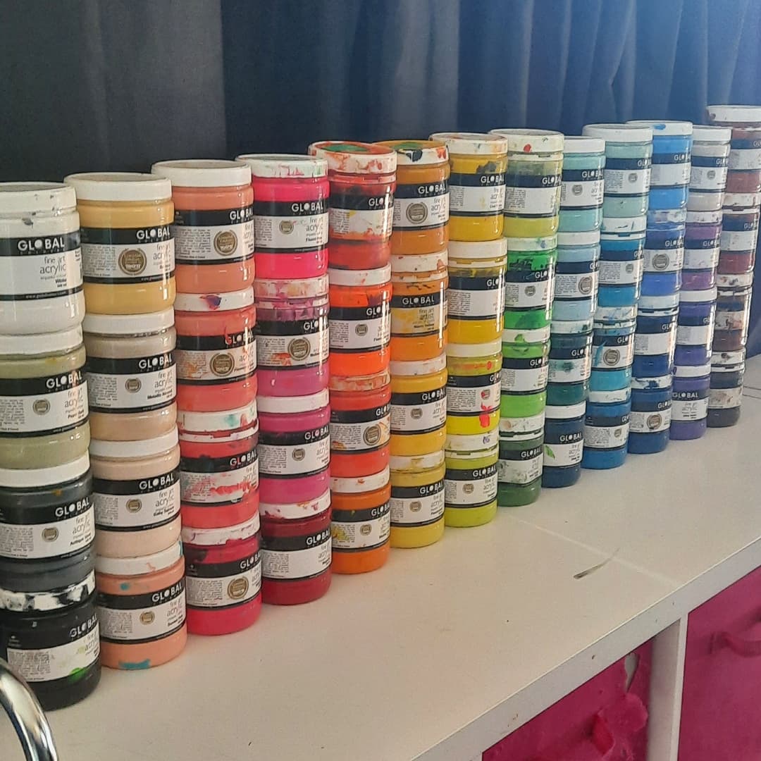 Rainbow happiness right here, feeling the feels of lockdown for another 2 weeks in Sydney so does anyone else organise art supplies!!?? Hehehe…. missing a few new colours like the amazing coral & turquoise but otherwise… these are my absolute favourite acrylic paints by an awesome Aussie team @globalcolours in my local Sydney area!! I’ve been using these for over 10years and just keep adding to our rad rainbow collection….. our magical rainbow wall of paints!!!! Delicious!!