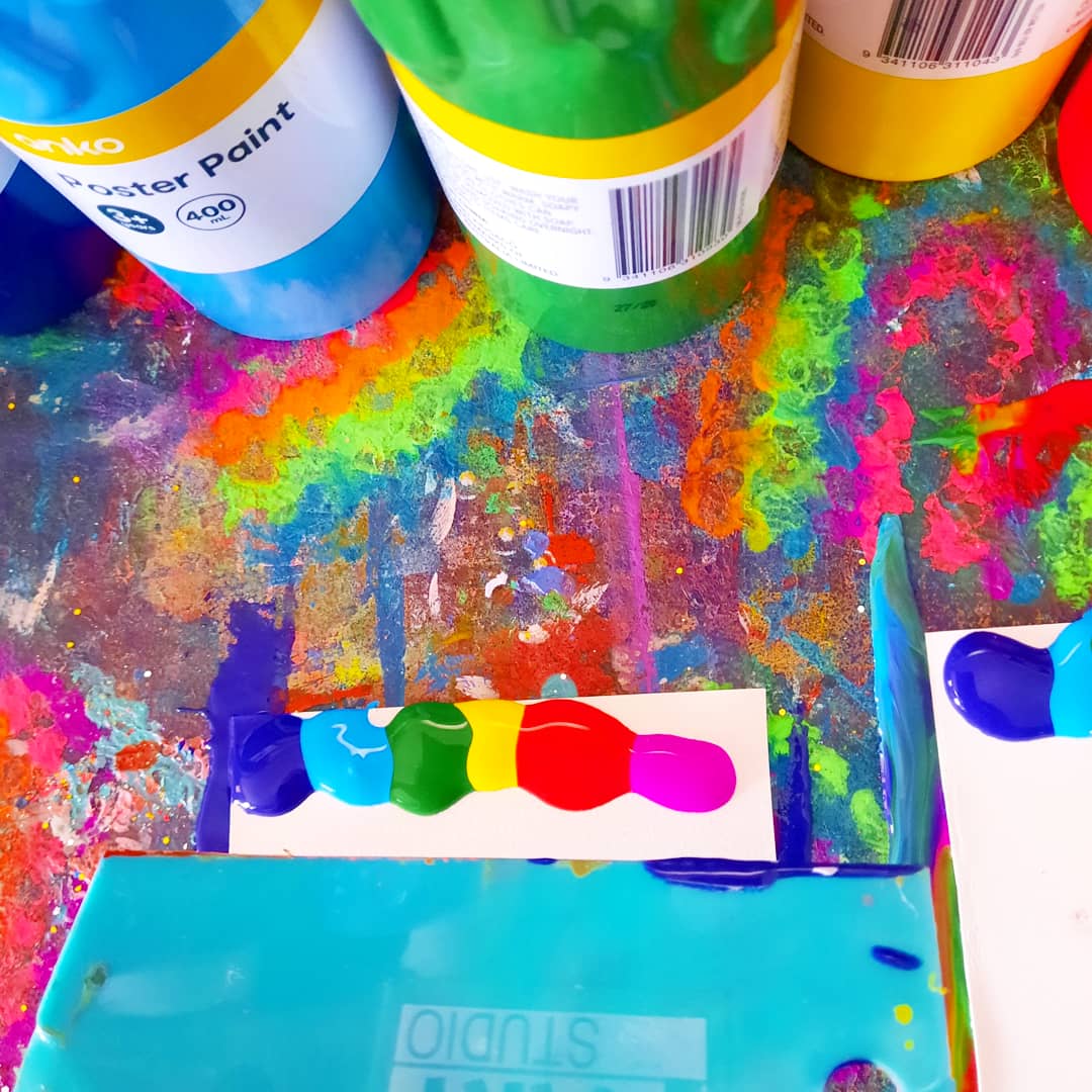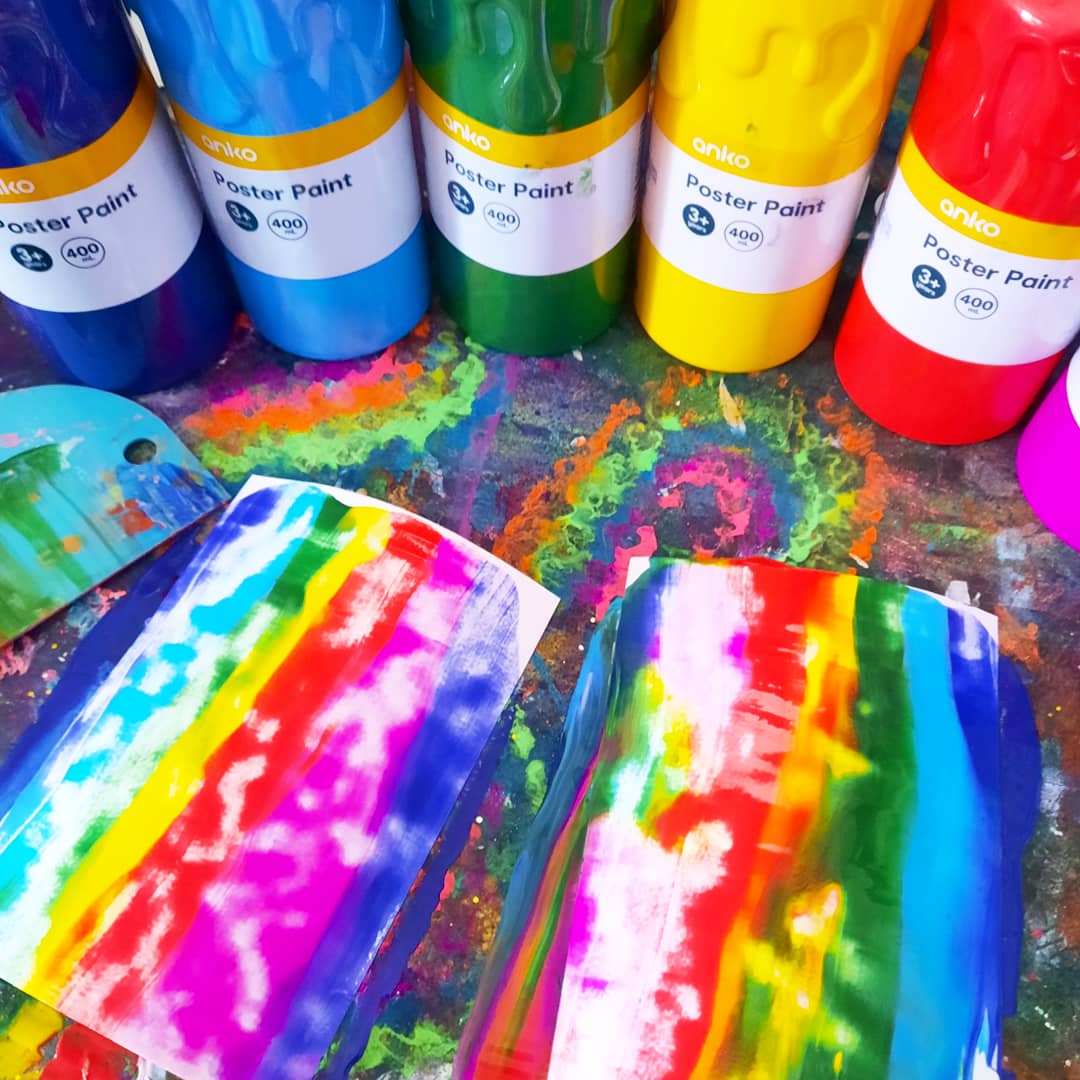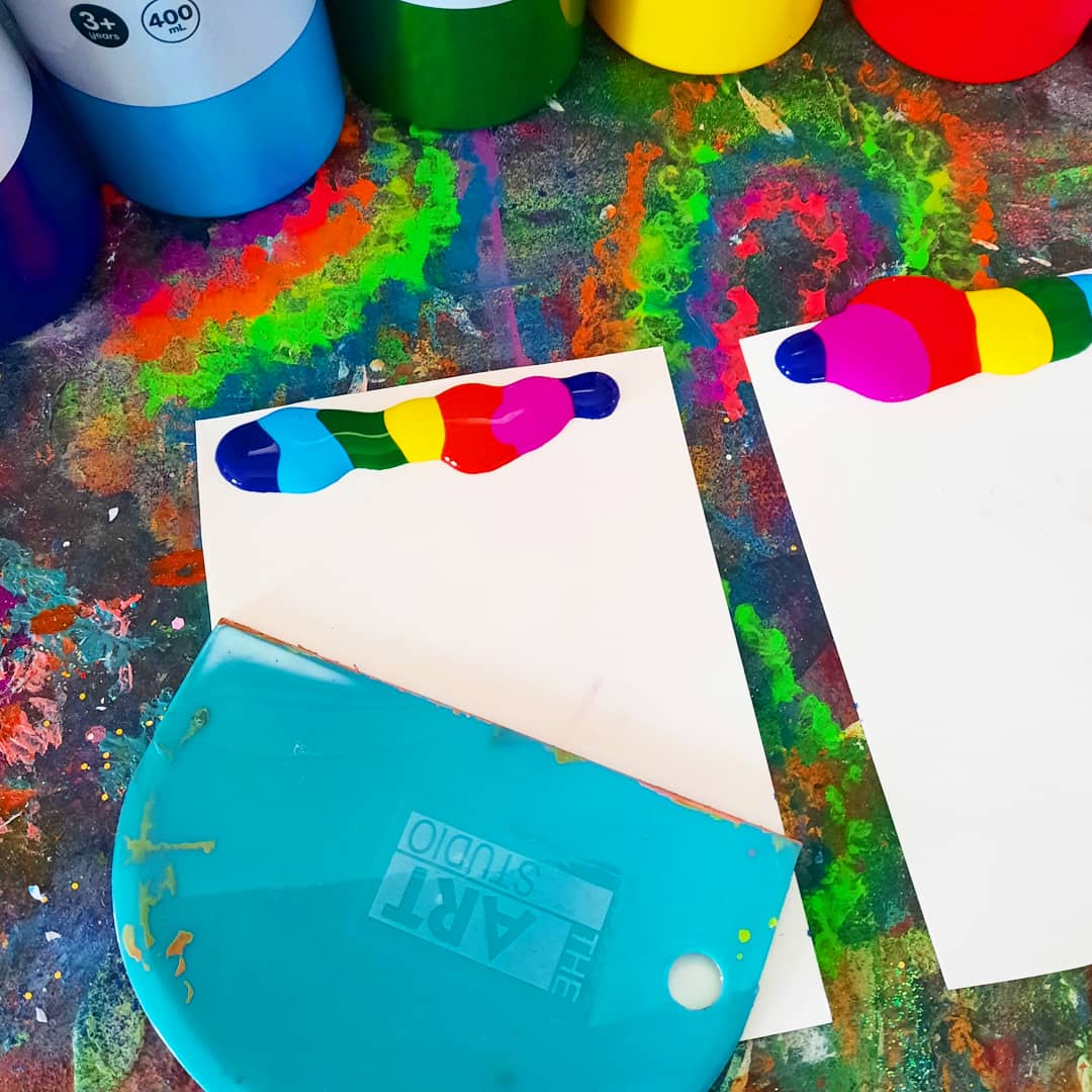 Paint scrapper fun!!!! We found some great larger ones @bunnings and also use fluorescent paints from Ikea called Mala paints as they are easy to use for children