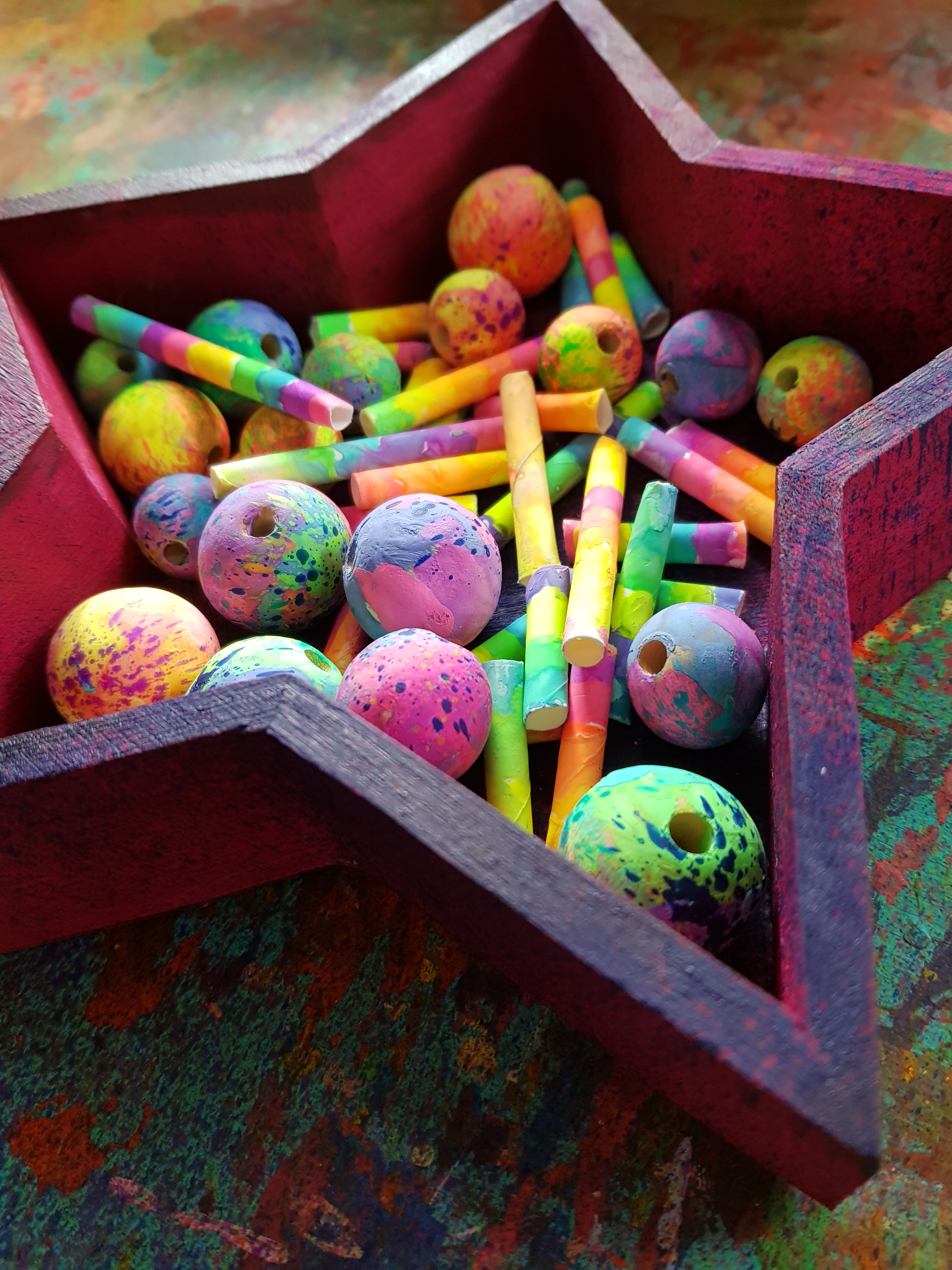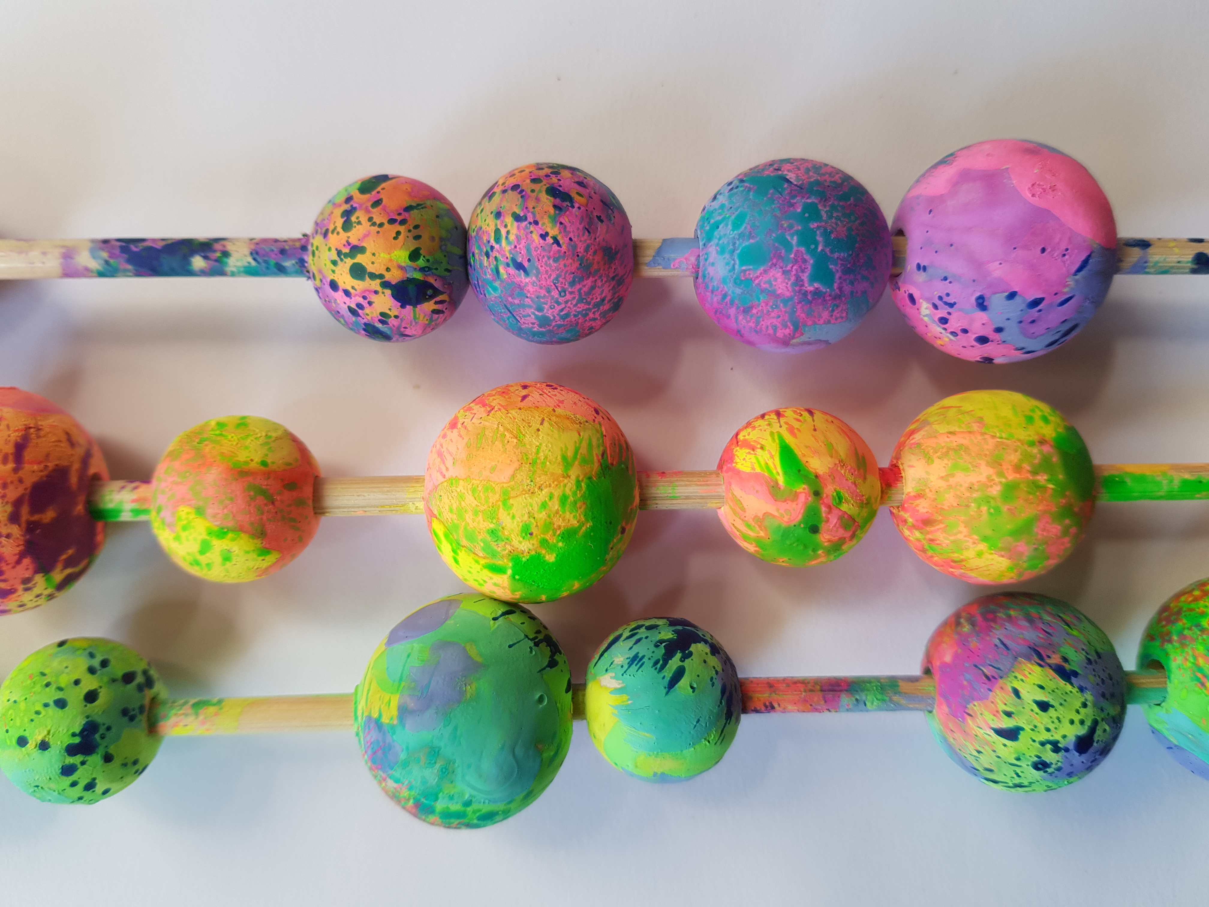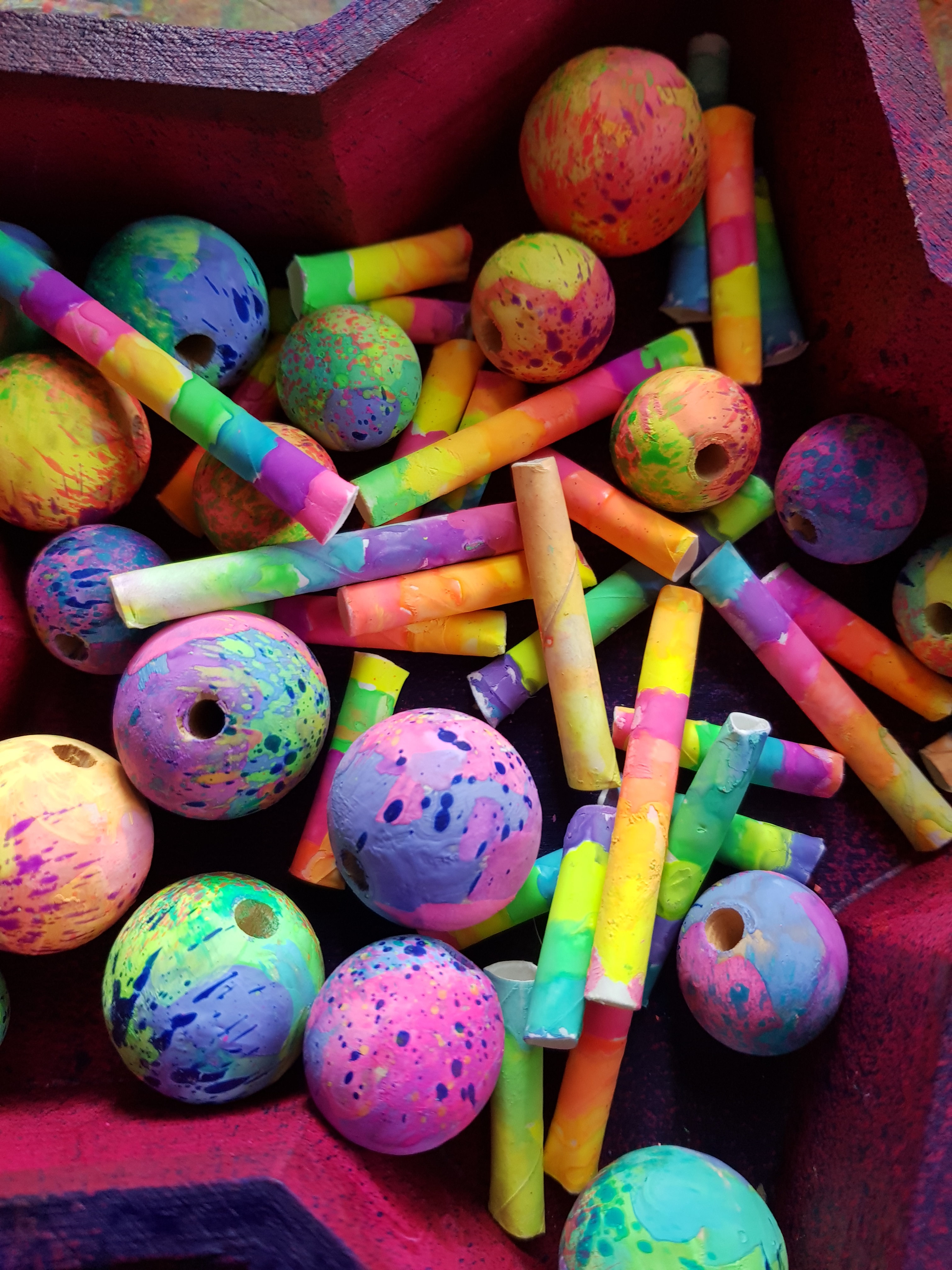 This turned out sooooo pretty and bright!!! Hand painted wooden beads! The fluro colours are magic using our favorite from @micador and wooden beads from @spotlightstores ….. we threaded the beads onto a skewer to get a nice even coat of colour, can’t wait for the kids to make beautiful colourful necklaces!!!