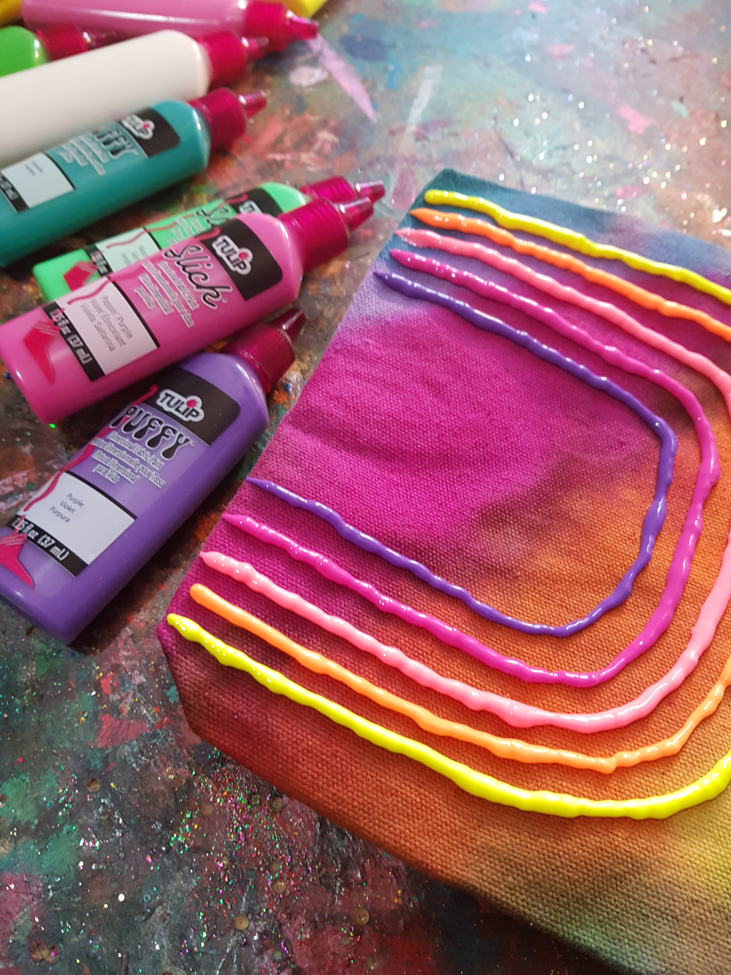 Our puff paints …..Textured rainbow craft, these gorgeous plain pouches are from @riotartandcraft …. you may have seen in previous post that we love using puff paint, we added fabric puff textured paints from @spotlightstores ….. endless idea’s in your creative adventures & projects, but this is what we decided to create, hope you feel inspired to create!!!