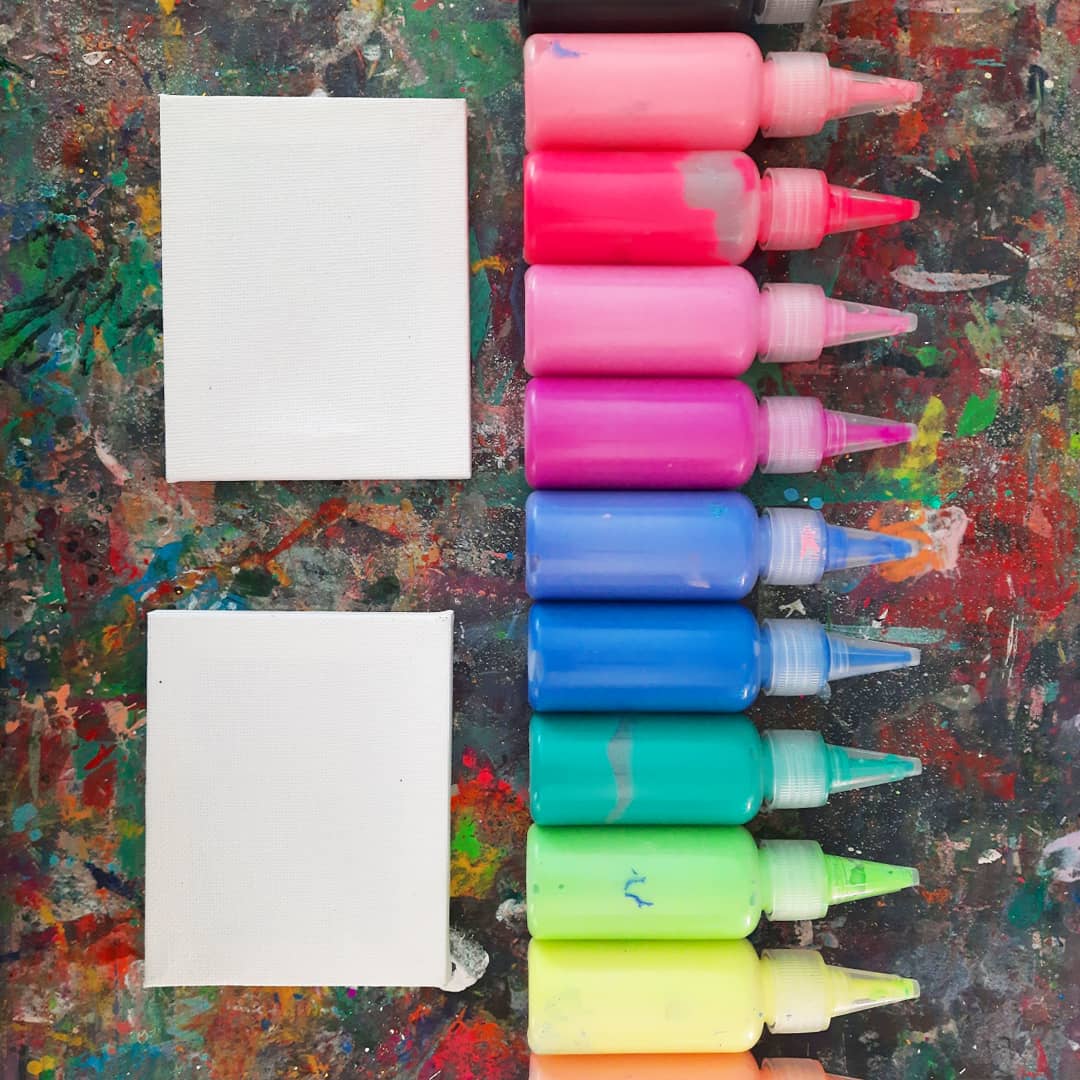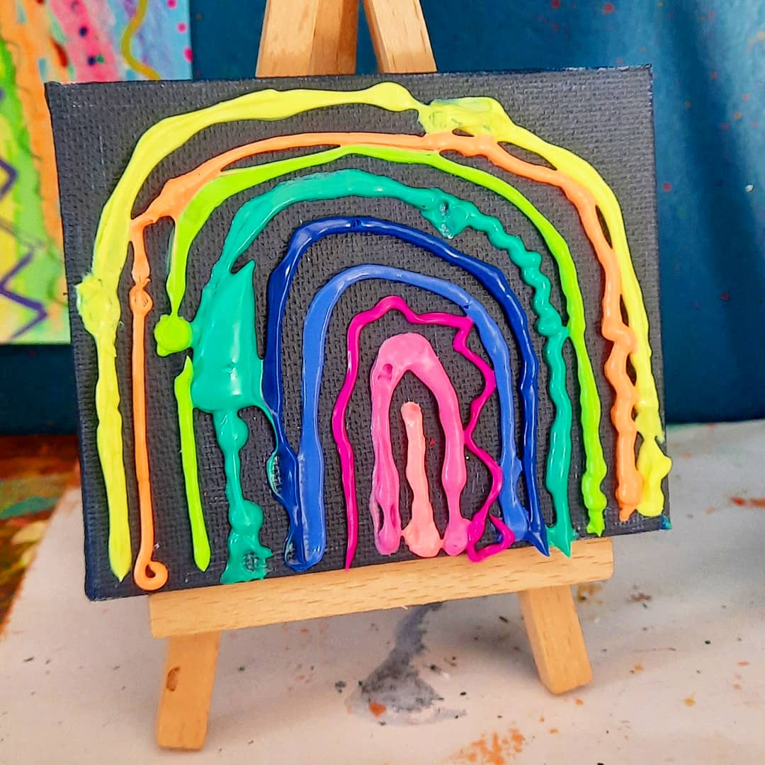 Tiny art, how cute are these mini canvases and easel, mini paintings made using fun puff paint from @kmartaus adding a bit of texture, cute plain canvas from @montmarteart so many ideas!