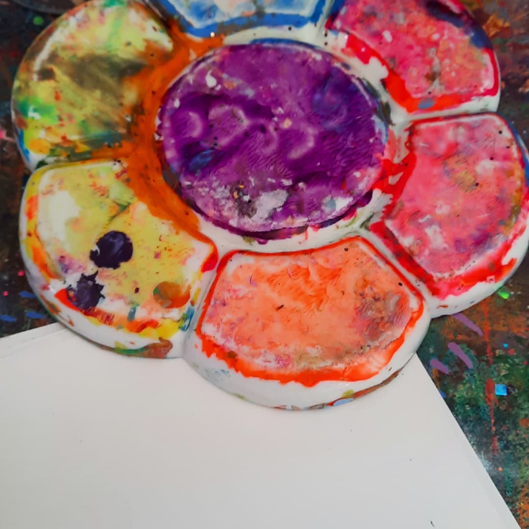 Inspo for lockdown! I wanted to share some fun activities using a few things from the home, we made Tupperware prints, using a container, we painted the base and used a cotton tip to draw designs, then placed the paper onto the paint and pressed down, peel off…..tadddaaa…. our gorgeous prints, endless idea’s. You can use any shaped container and any paint. We also used an old flower shaped paint tray from @micador aswell for more fun idea’s.