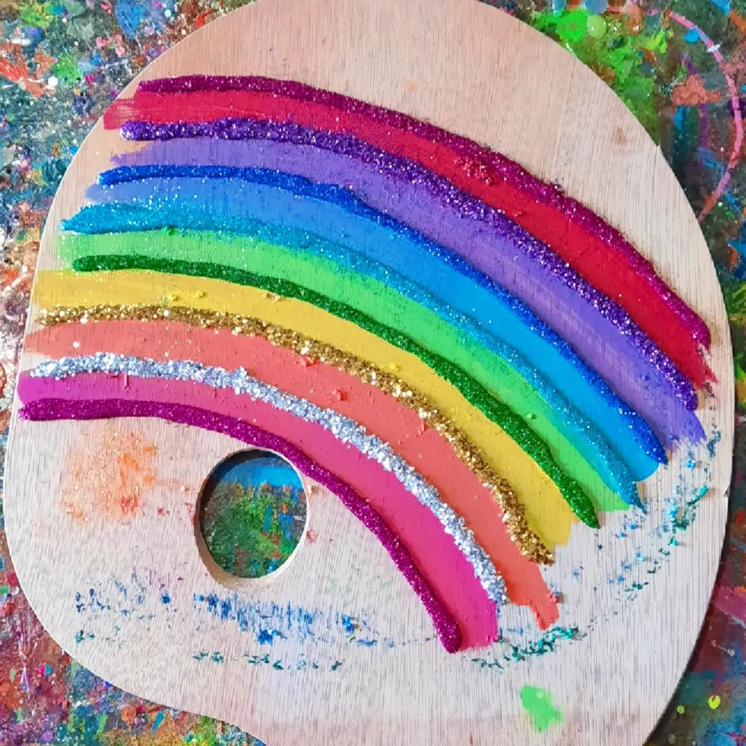 We found this cute plain artist palette and thought it make fun art canvas rather than a tradional canvas!