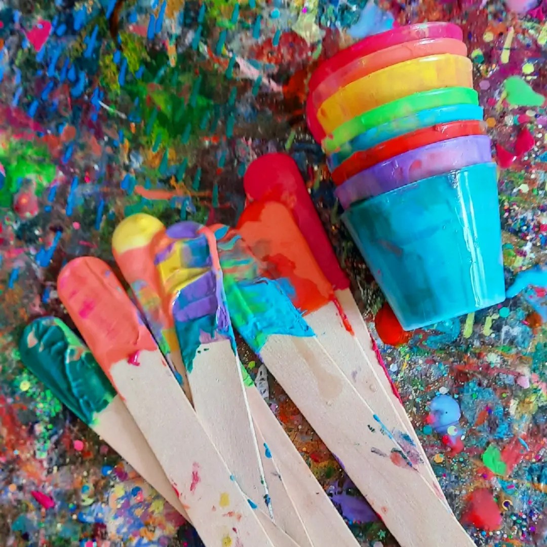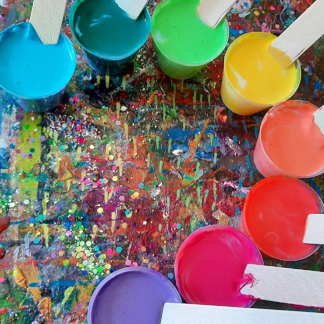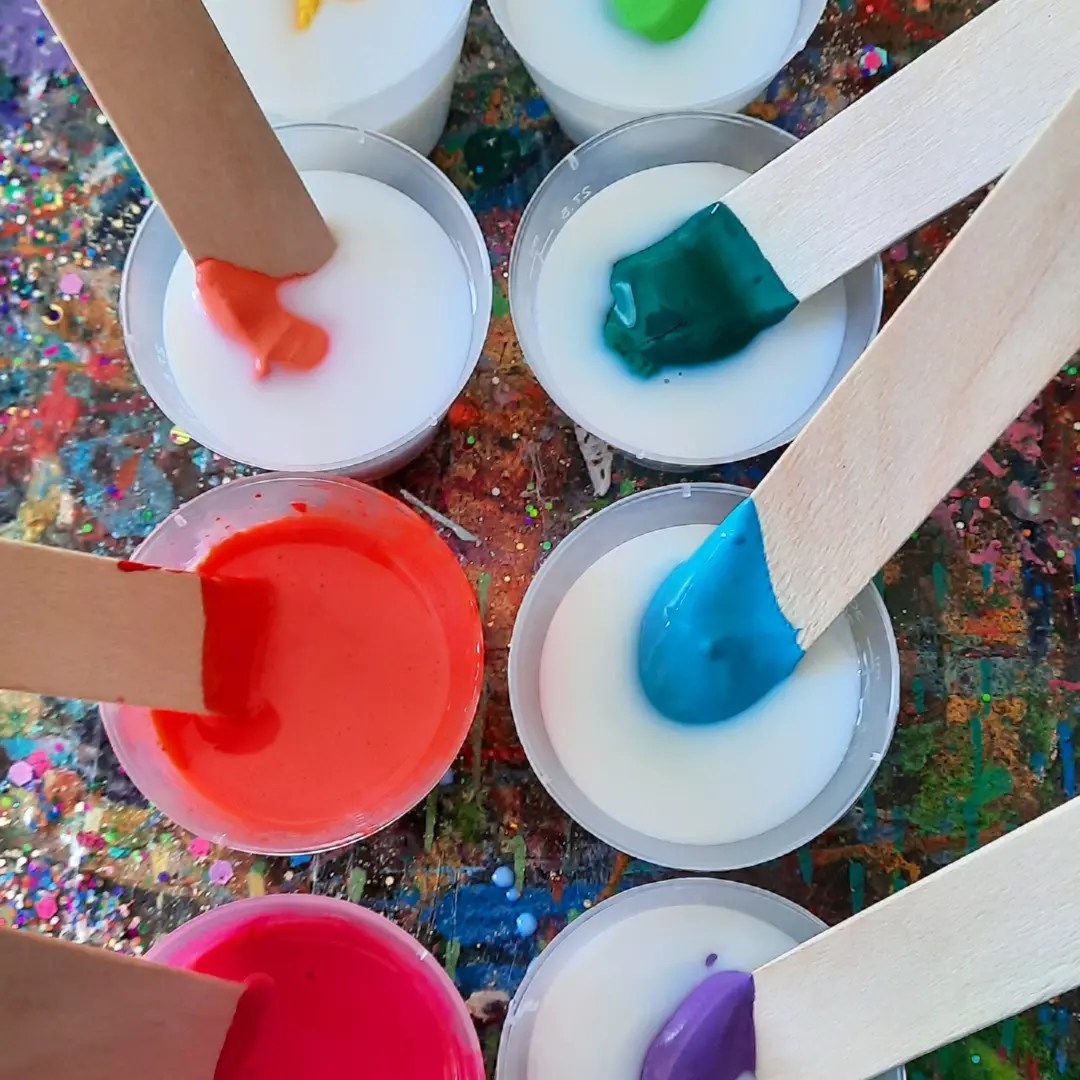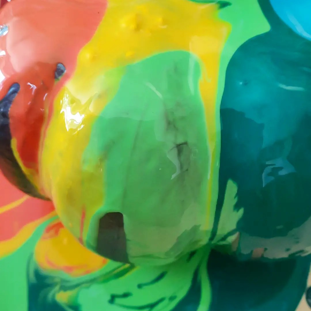 We used @globalcolours to paint theses bright colours and using their high flow products, you can mix normal acrylic paints with high flow mediums to do this paint pour.