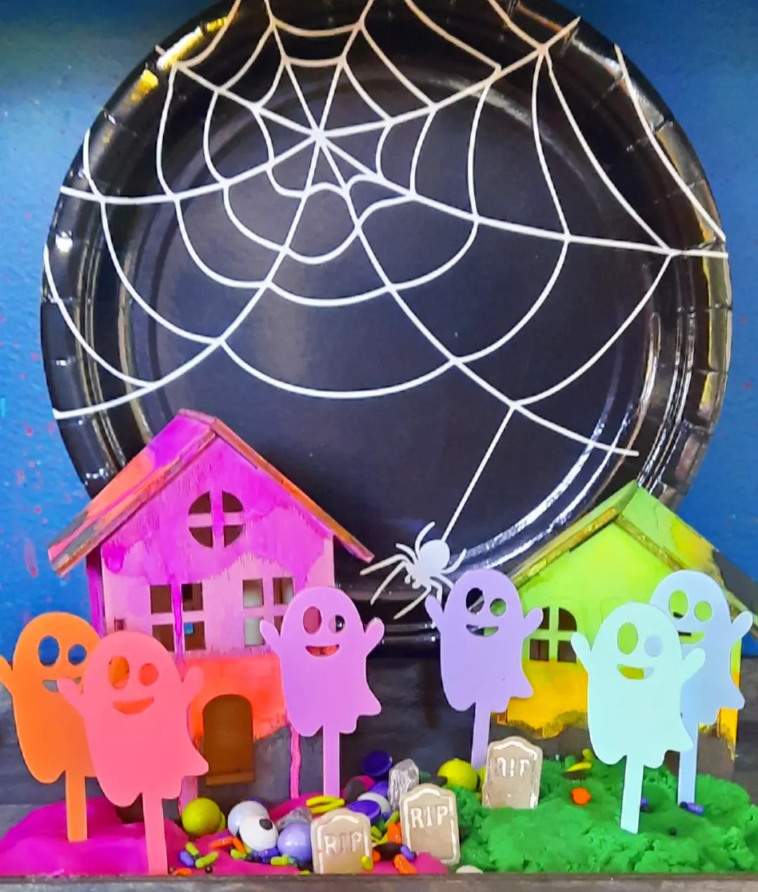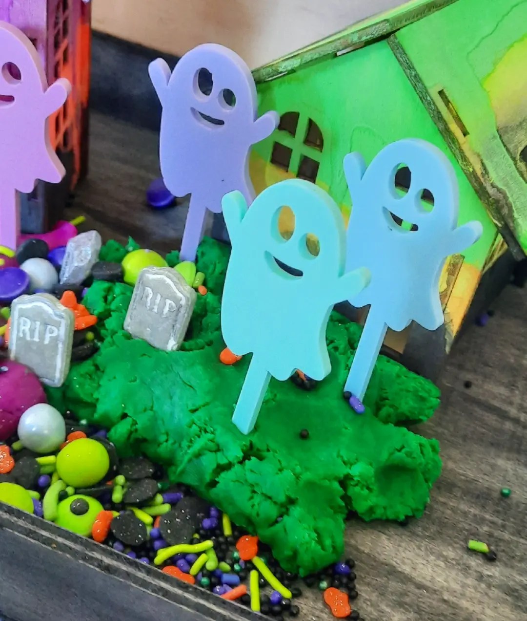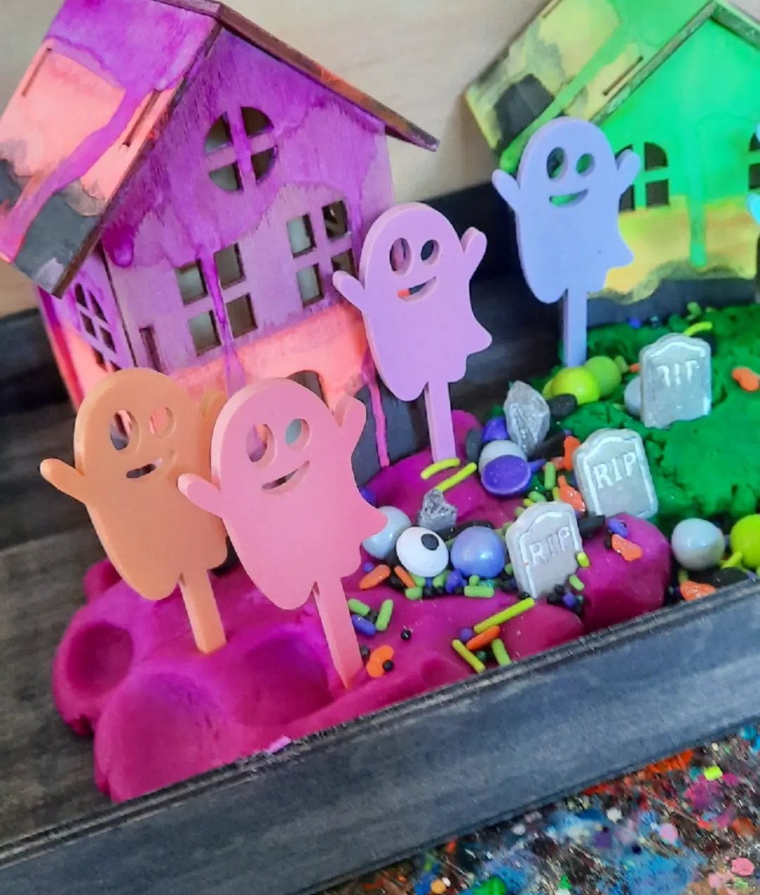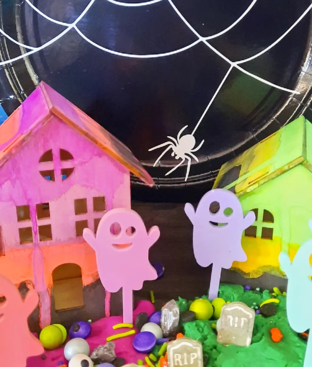 Spooky Halloween haunted house with these cute acrylic ghosts & candy sprinkles that are too sweet to be scary from @get.sprinkled