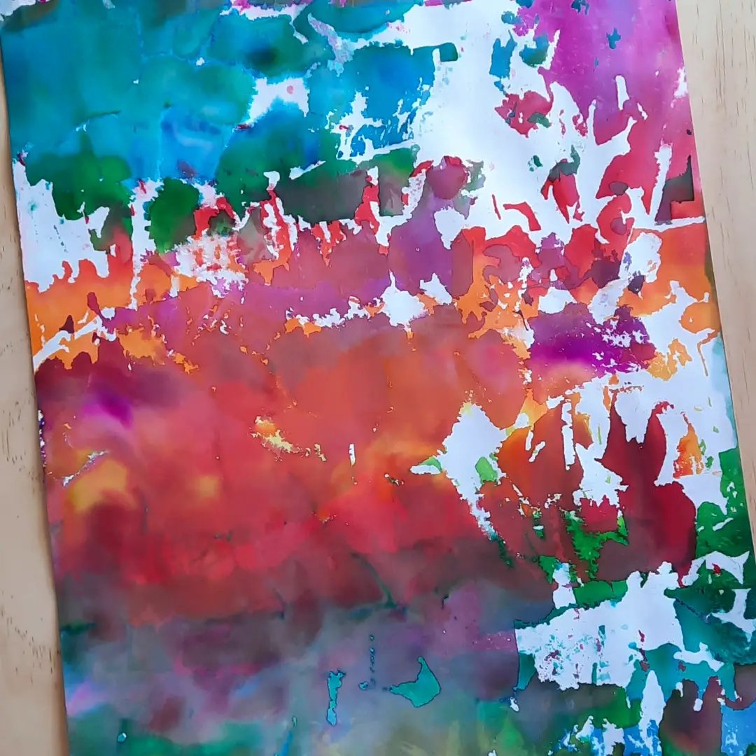 Bleeding tissue paper art, a fun way to be creative, we cut the tissue paper up into squares and layer any way you like, spray the paper lightly with spray bottle and leave to dry & liftvthe paper, the patterns & colours are amazing!!!!