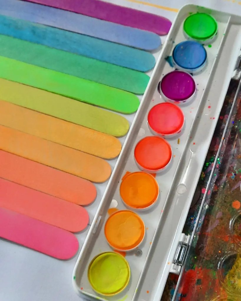 endless possibilities, we used @micador watercolour paints for these beautiful rainbow sticks, and glued them together using pva or craft glue.