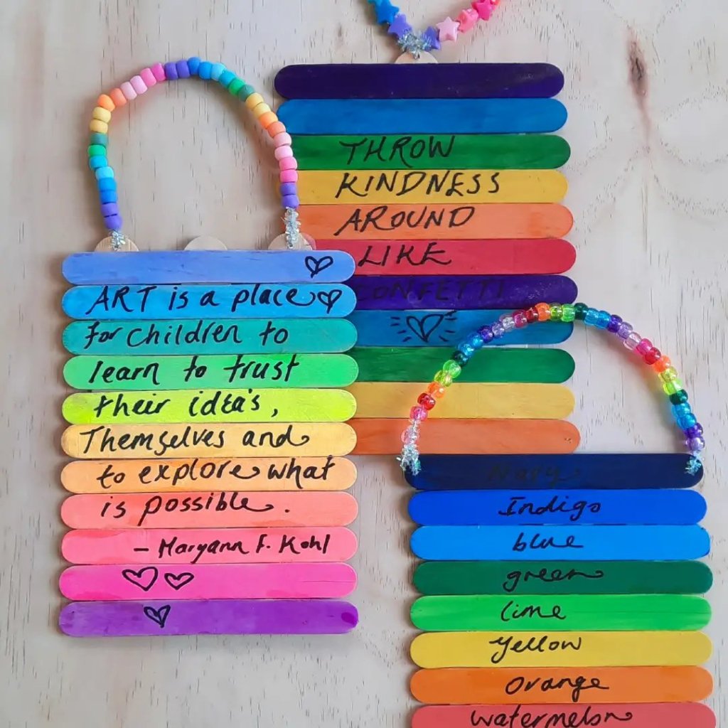 Gorgeous rainbow art using paddle pop sticks or also called popsicle sticks from@krafterskorneraus ……….