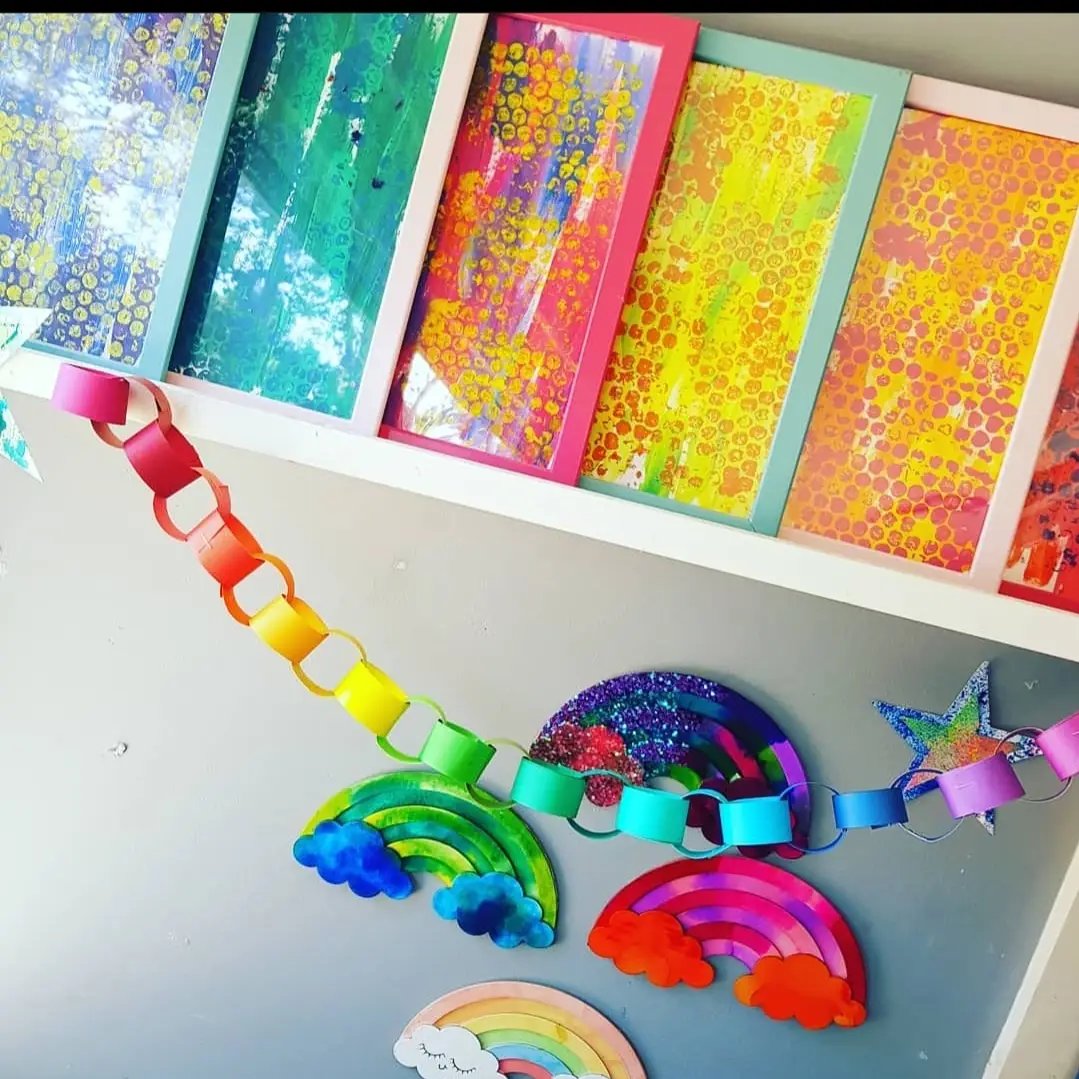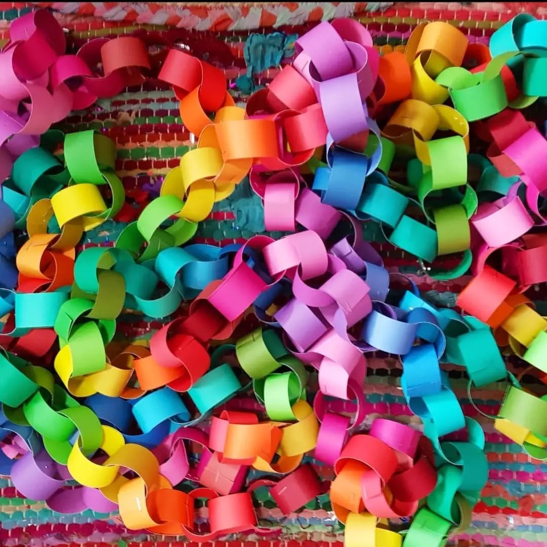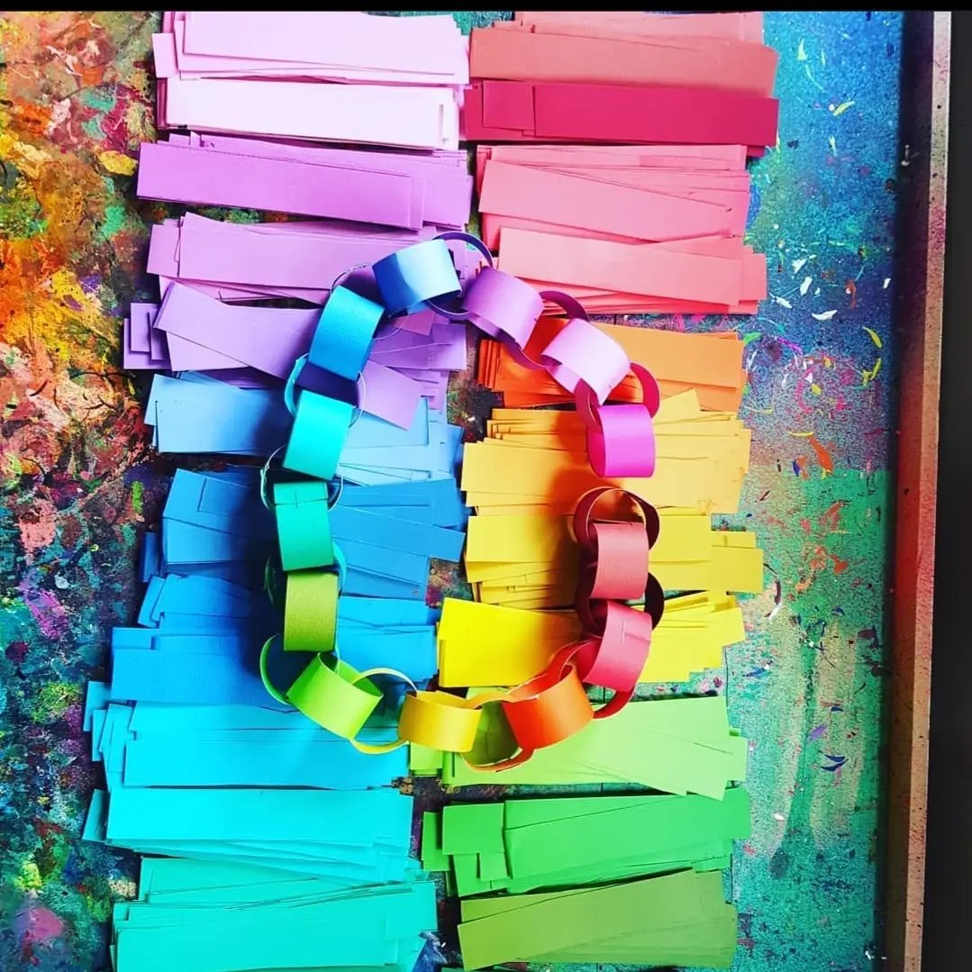 Rainbow paper chain, such a gorgeous and easy decoration for anytime of year……Getting our Christmas craft on!!!! Our paper paper is from @spotlightstores a basic cardstock…