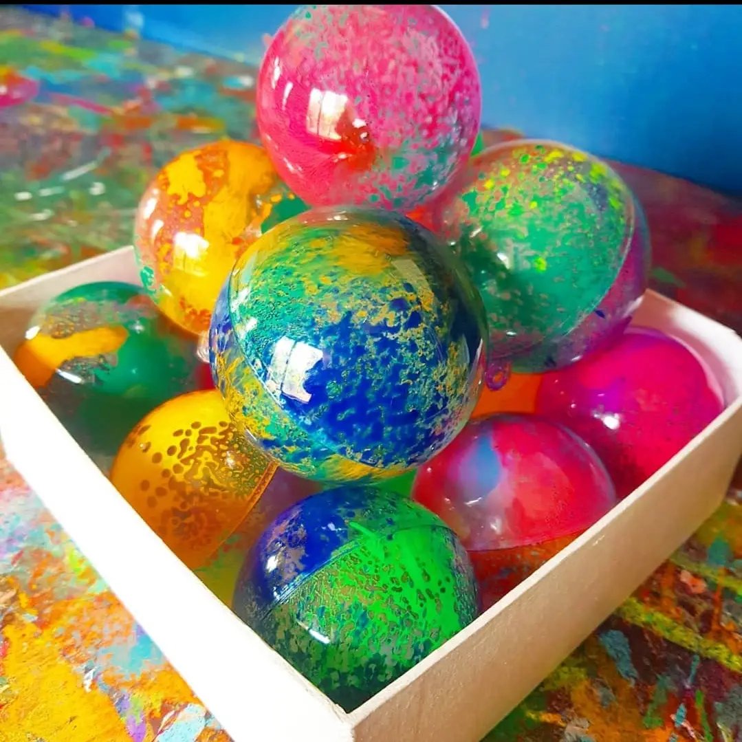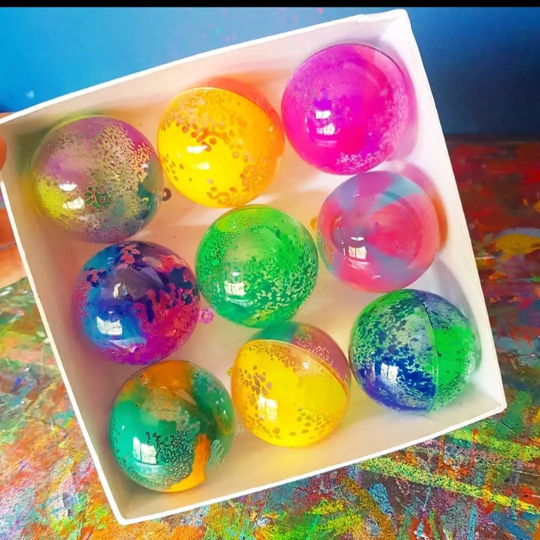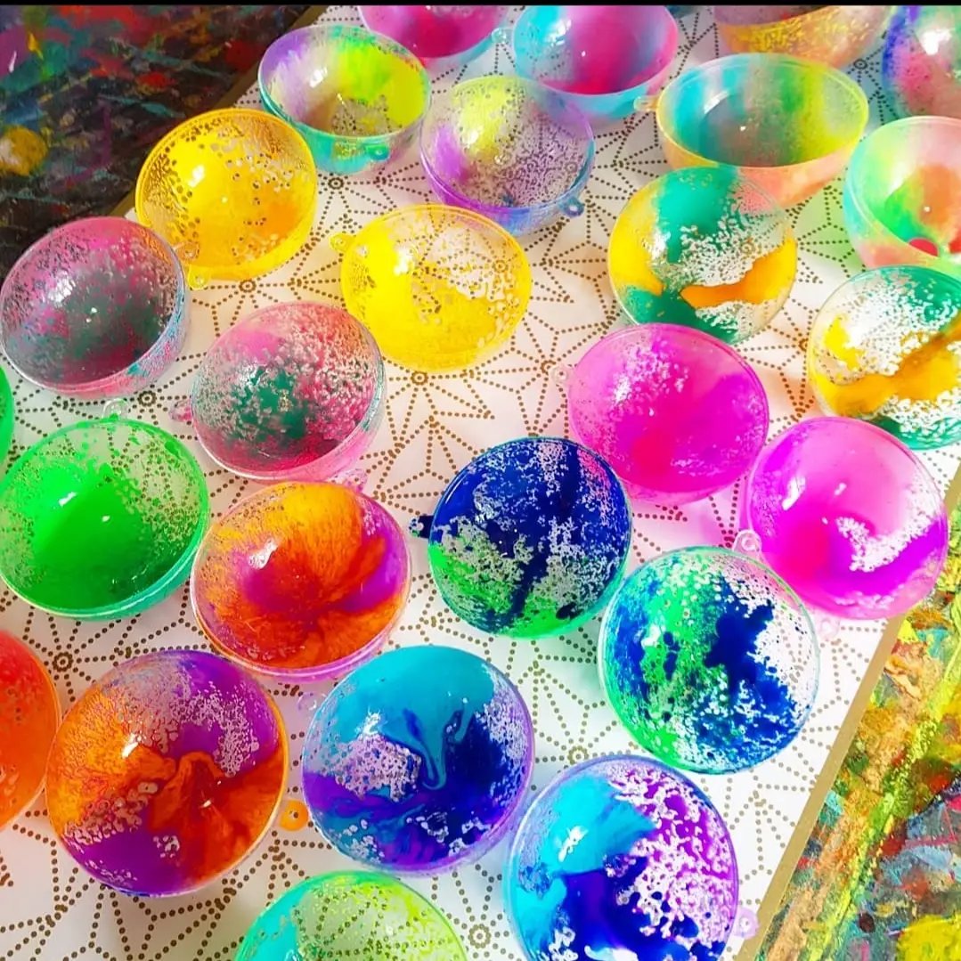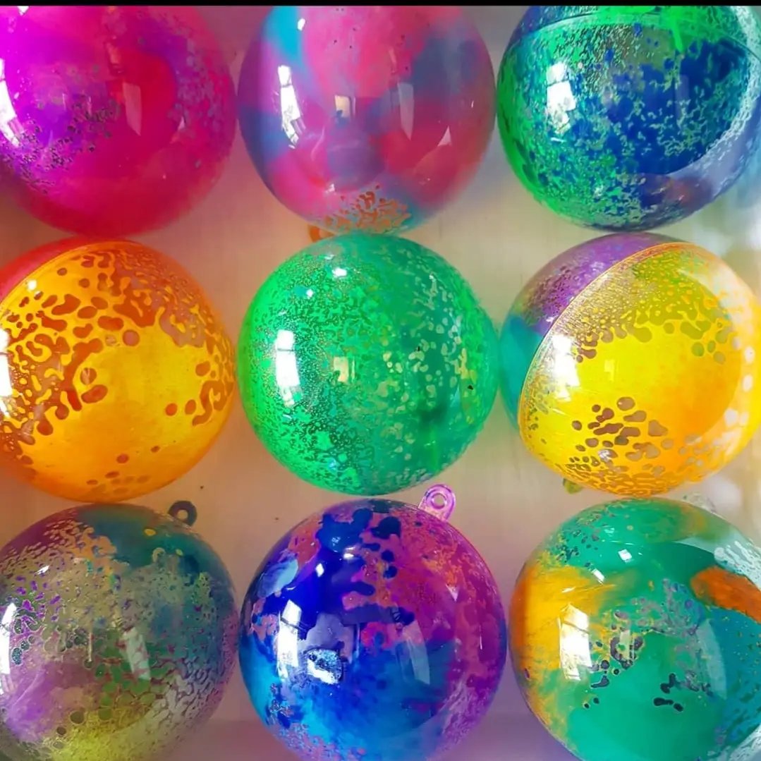 Spray paint baubles!!!! So beautiful & bright!!! We used the fluro pump sprays from @kmartaus and the empty baubles cases from @lincraft these were so fun and pretty. Each year we love making baubles for our Christmas tree!