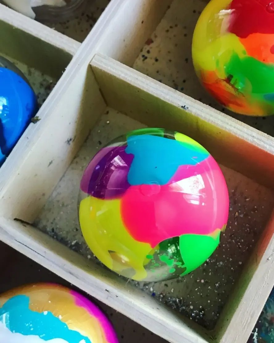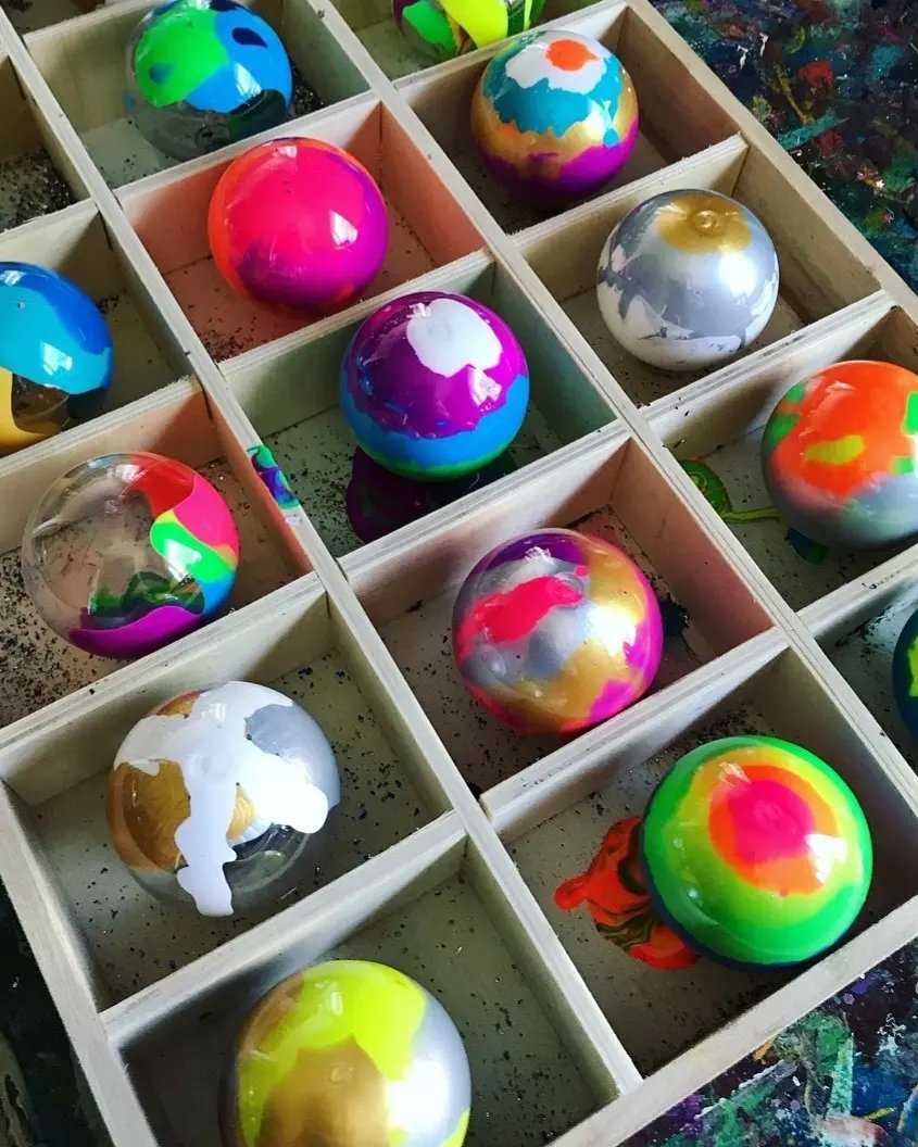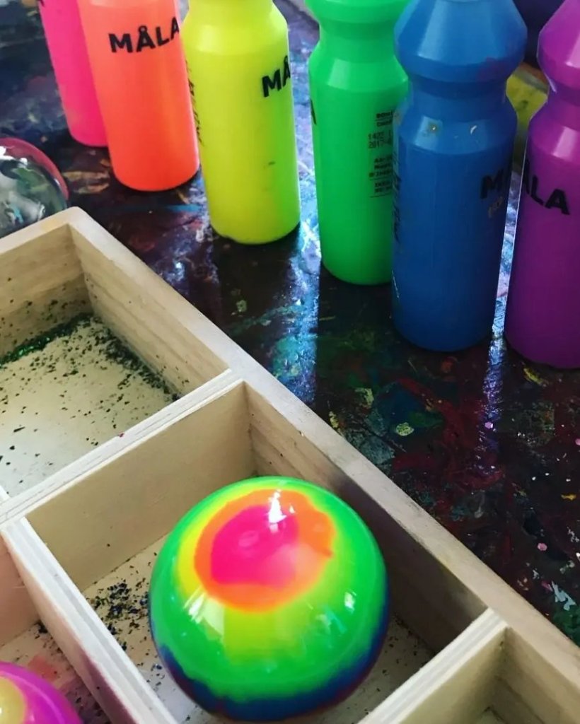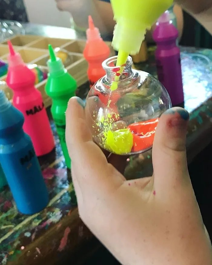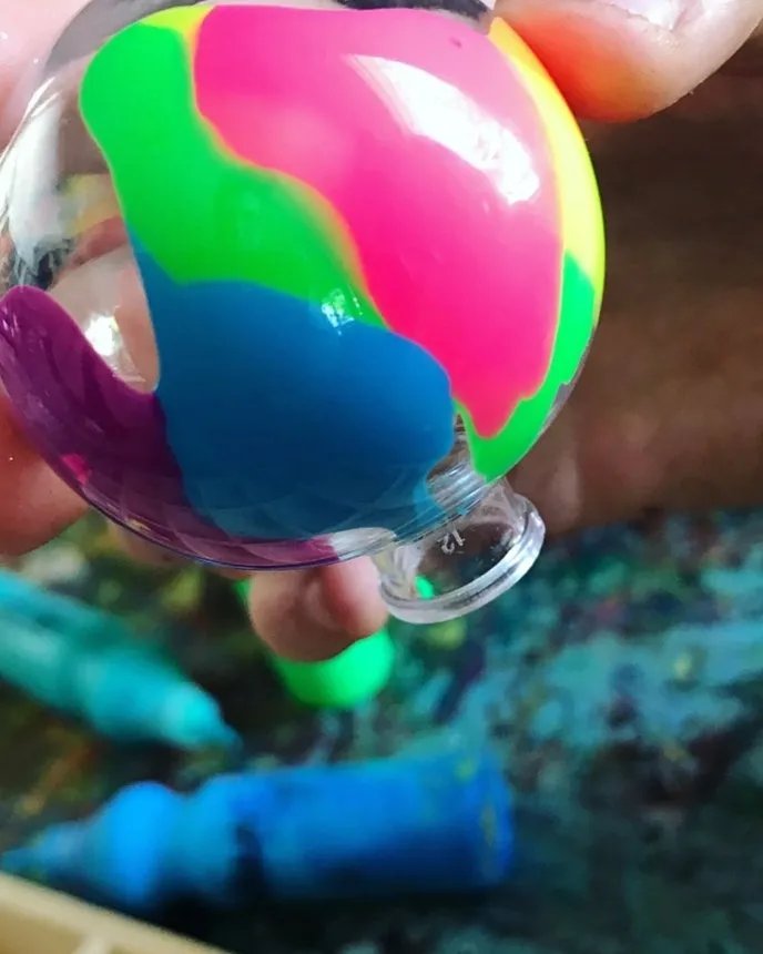 These were soooo fun, they wanted to keep going but we ran out of baubles, these are from @riotartandcraft and paints from @ikea_australia we popped them in a tray while they drip and dry!!